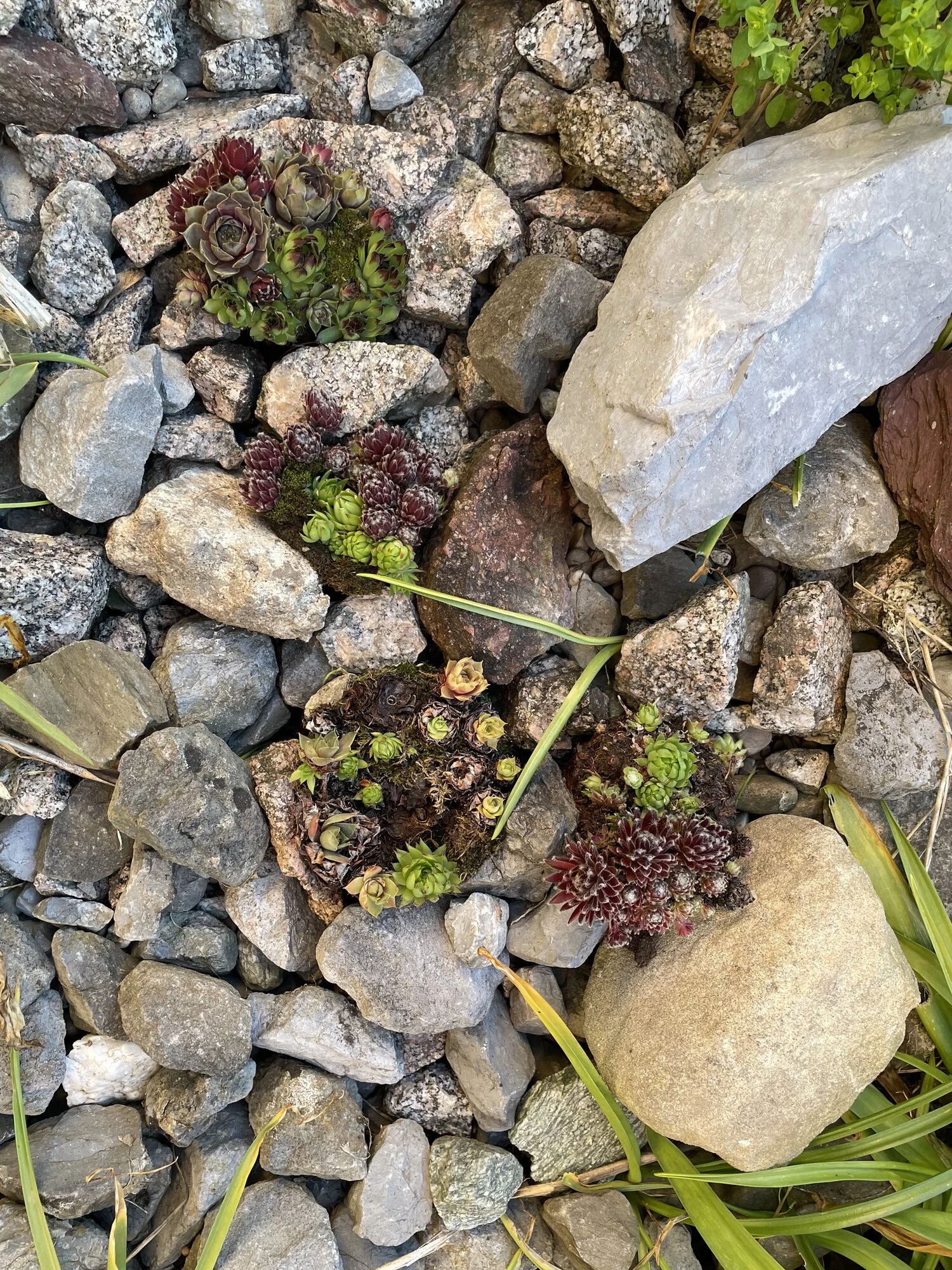 Unsere mediterrane Ecke. Zwei Feigenbäume, viel Lavendel, später kommt noch eine Agave hin. Und hinten sind noch die Hauswurze.