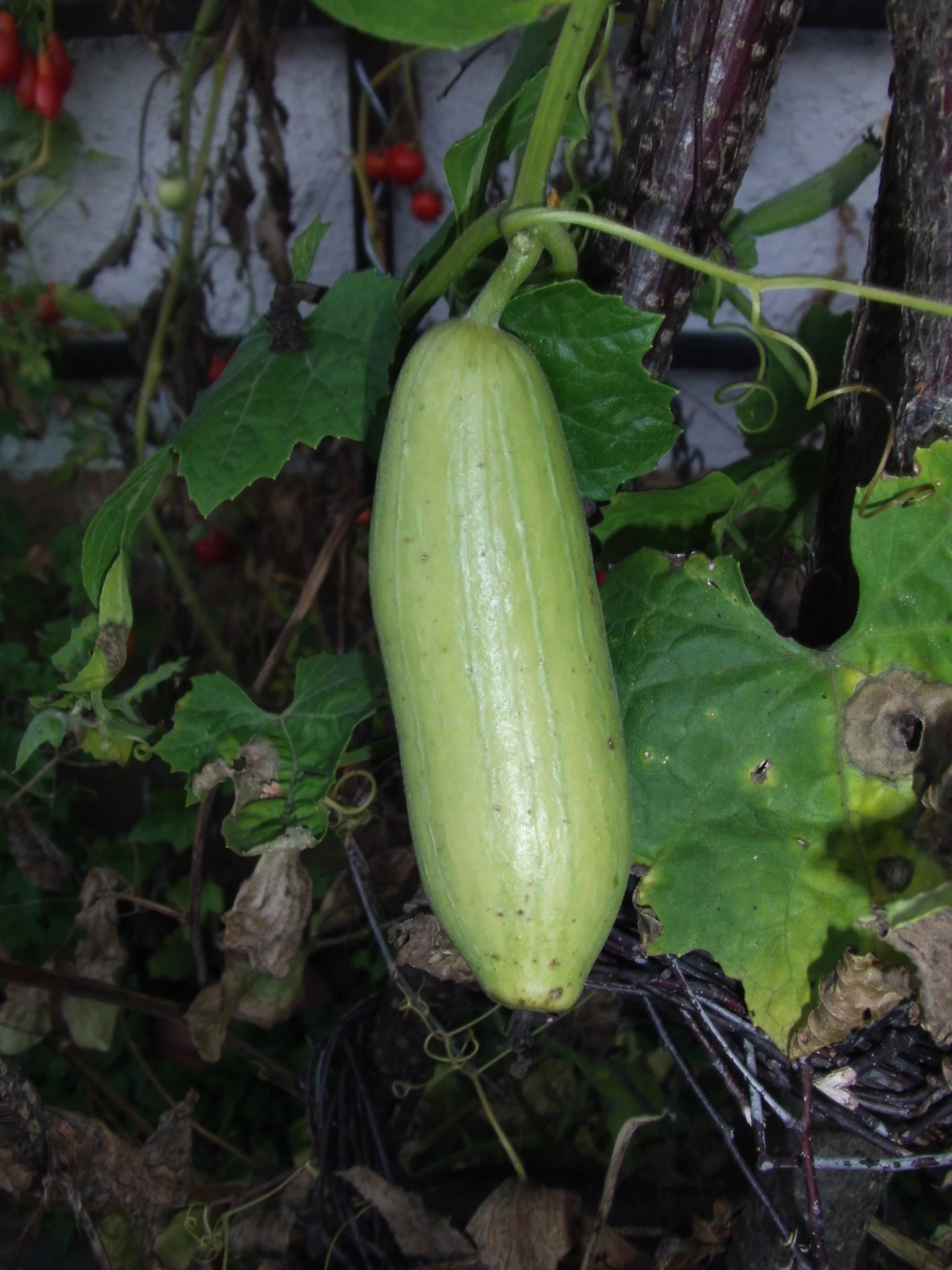 Hier mein einziges Luffa-Früchtchen am 18.10. mit einer Länge von ca. 12 cm: