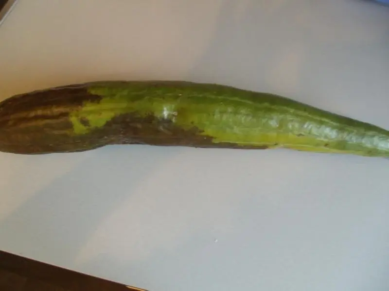 Auf Bild 1 sieht man ein Loch - wer oder was auch immer das gebohrt hat. An der Stelle ist die Gurke beim waschen auseinander gebrochen.