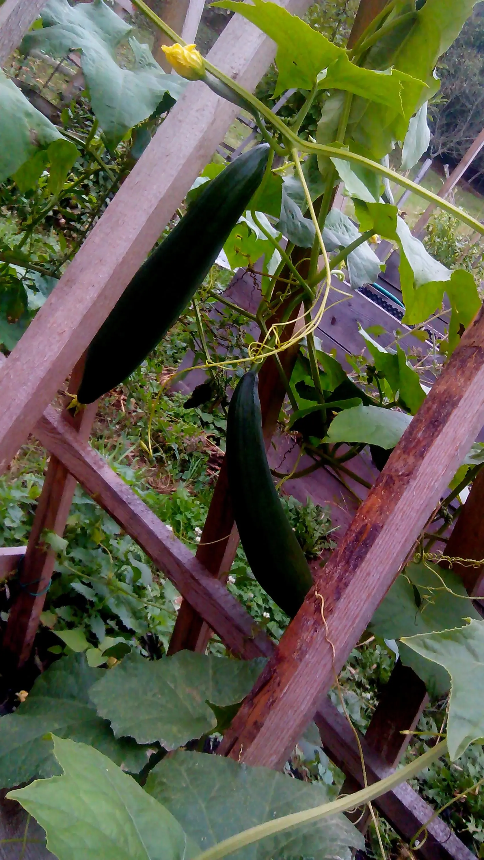 Meine Luffa stehen im Freiland neben den Gurken .... und obwohl es anfänglich so aussah als würde nix aus ihnen werden, sind zumindest 2 zu beachtlicher Größe herangewachsen. Vor 2 Wochen entdeckte ich dann noch kleine Gürkchen, auch diese sind inzwischen schon unterarmlange, die lasse ich aber noch ...