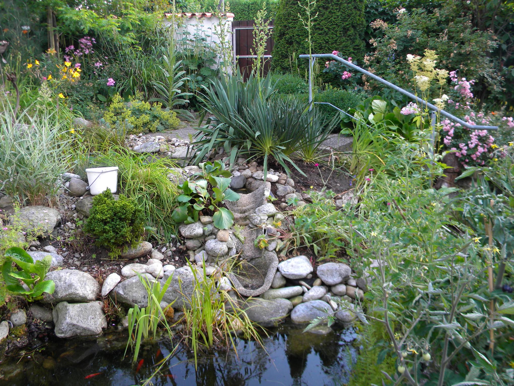 Bin am Neugestalten des Hangs, der die beiden Teiche mit einem kleinen "Wasserfall" verbindet.
