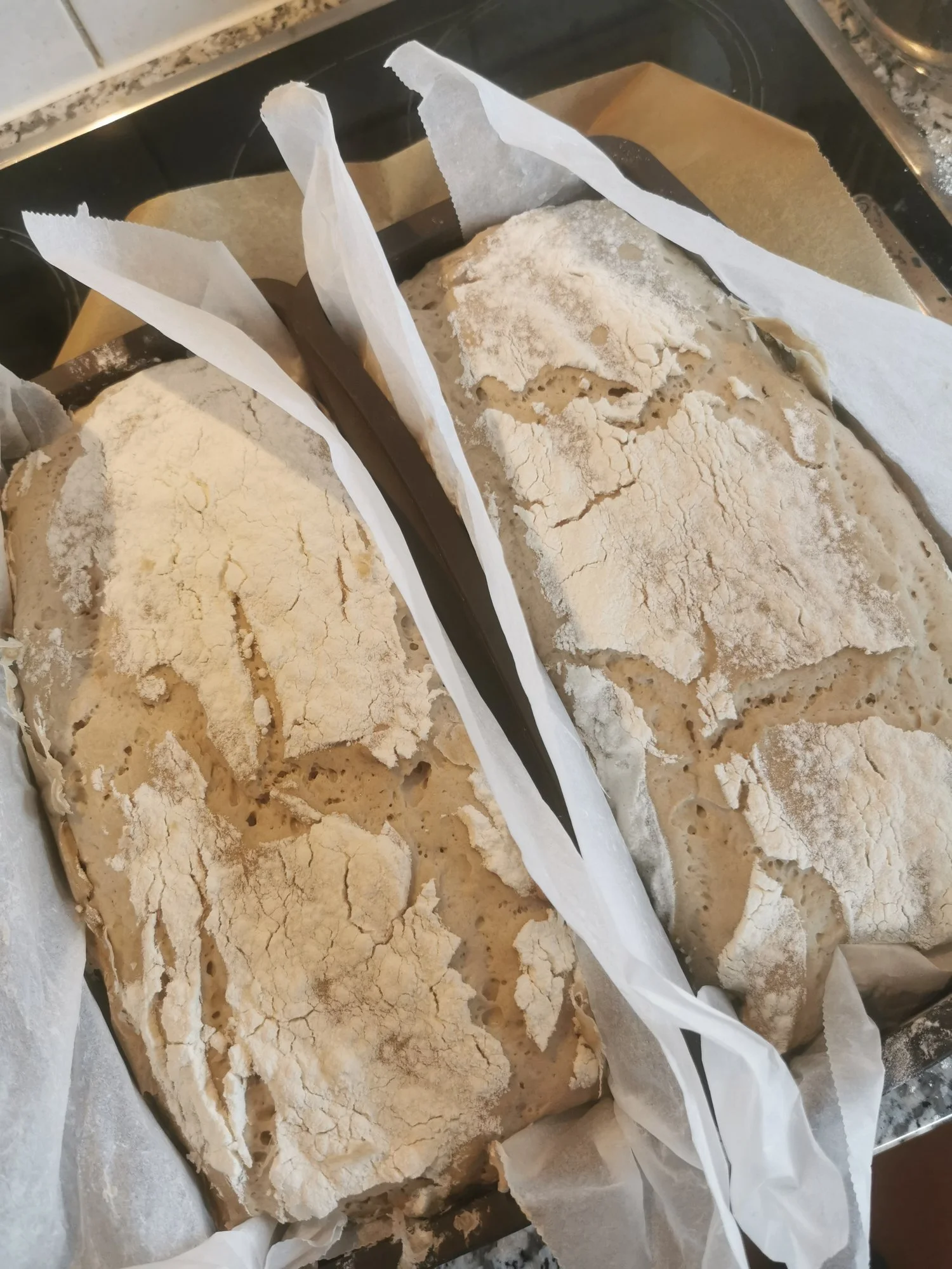 • Und ich hab mir fest vorgenommen, in den nächsten Tagen wieder ein Ciabatta zu machen. Ohne Sauerteig, mit wenig Hefe, dafür aber gefaltet wie ne Origami-Taube.