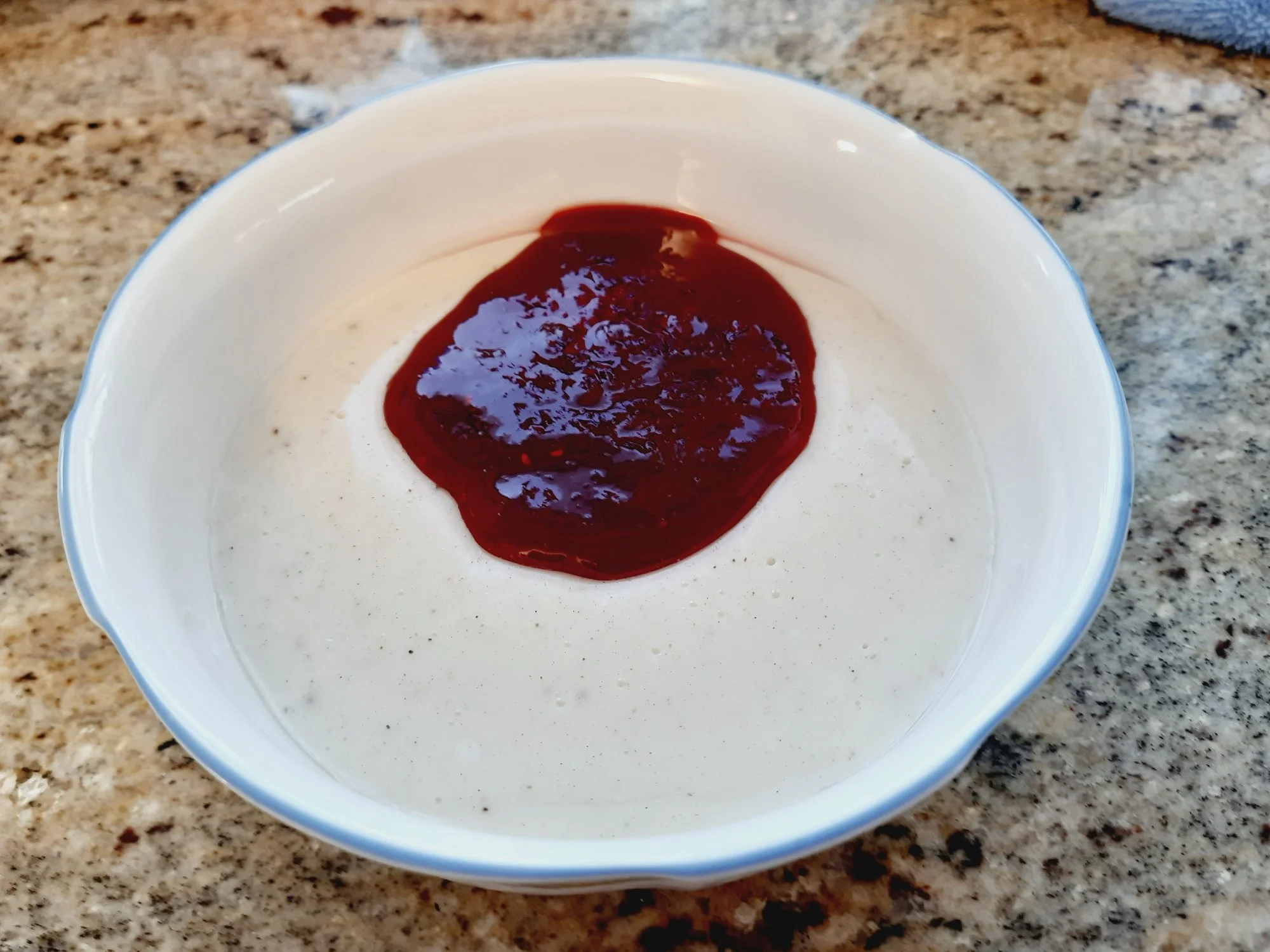 Schmeckt wie Panna Cotta mit Himbeersoße.