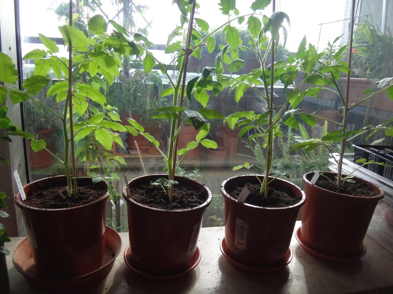 Den ganzen Tag Regen heute. Meine armen Tomaten stehen am Fenster und schauen sehnsüchtig hinaus. Ein bisschen werden sie noch warten müssen, bis sie endgültig umziehen dürfen.