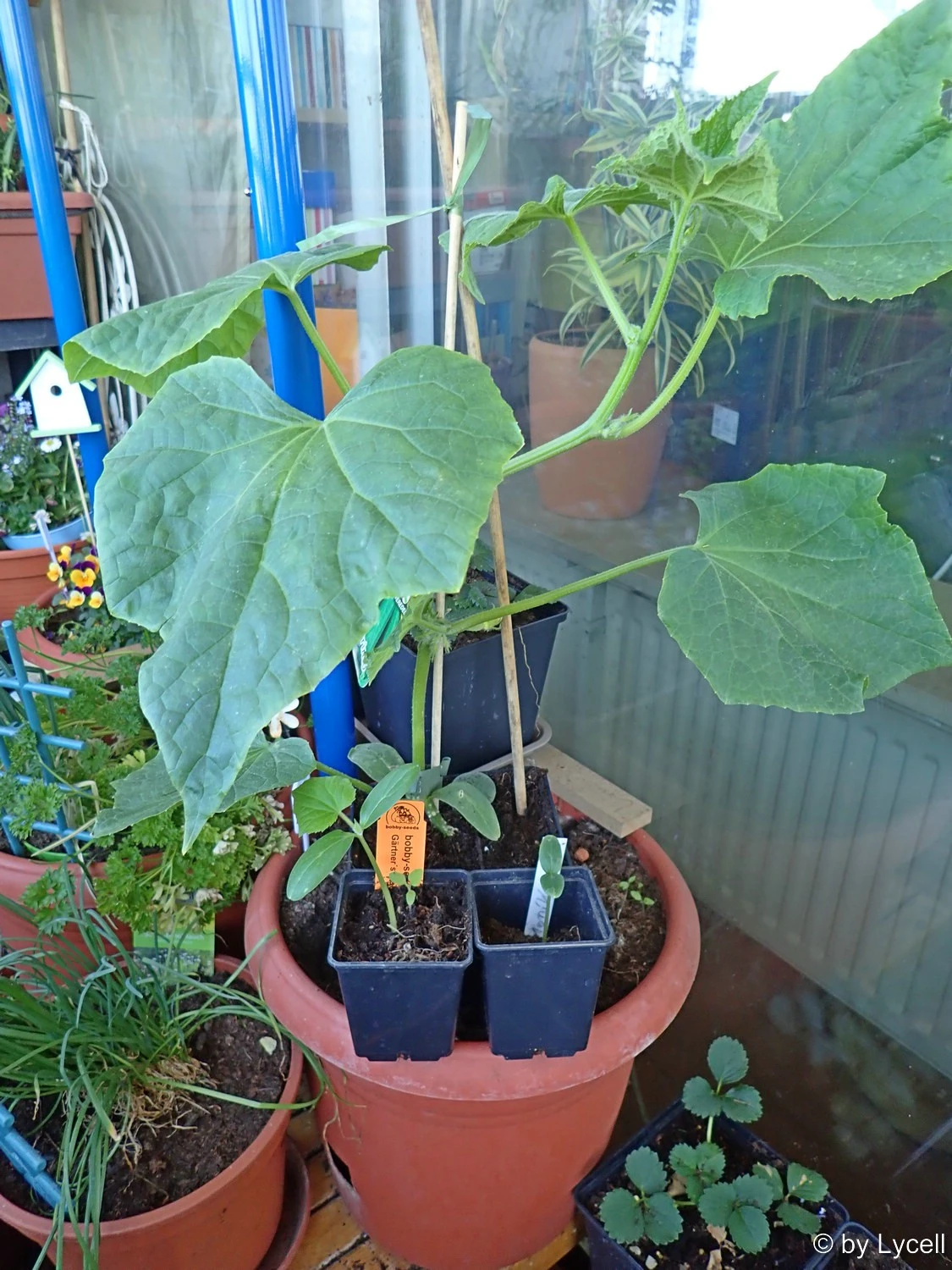 Die verborgene Knospe hinten bekommt Farbe. Nun weiß ich auch wieder, dass das eine Fresie werden dürfte. Die Zöglinge schwitzen, die Armen. Aber da müssen sie durch.