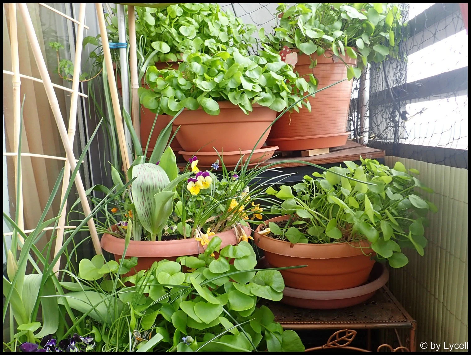 Die Hornveilchen sind einfach nur dankbare und ausdauernde Gesellen. Hätte ich einen Garten, würde ich einen ganze Wiese voll mit denen anlegen. Die Traubenhyazinthen ersetzen die Krokusse, wobei ich mich frage, warum die alle gelb blühten dieses Jahr. Komisch.