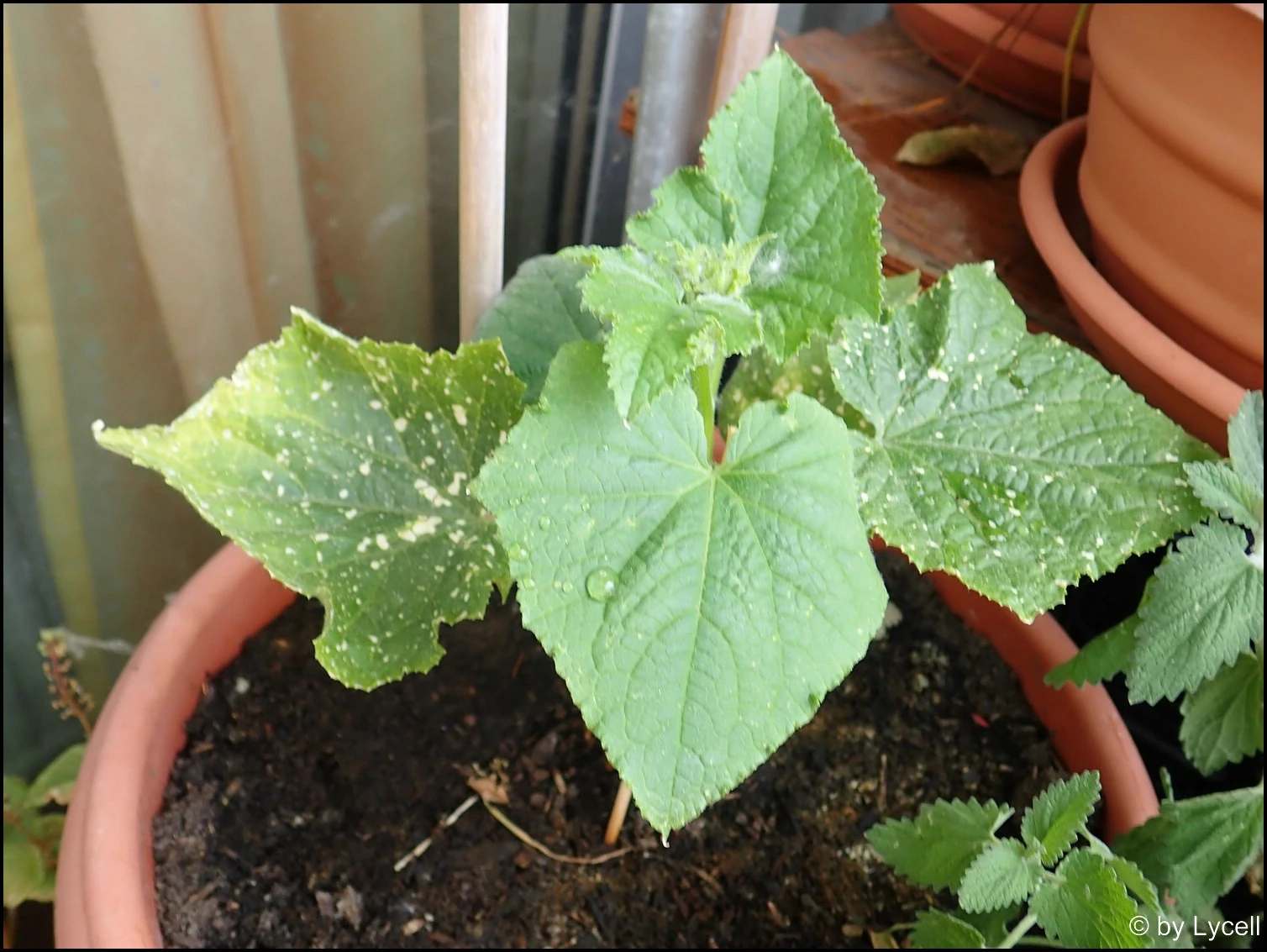 Meine beiden selbst gezogenen Gurken sind immer noch Winzlinge. Spätstarter eben. Die werden schon noch, aber verglichen mit der veredelten Aldipflanze, die beim Kauf ja auch nicht viel größer war, sind sie Winzlinge. Stand nicht dabei, aber die Aldipflanze scheint ebenfalls nur Mädelsblüten zu machen; bis jetzt jedenfalls. Kann mir nur recht sein.