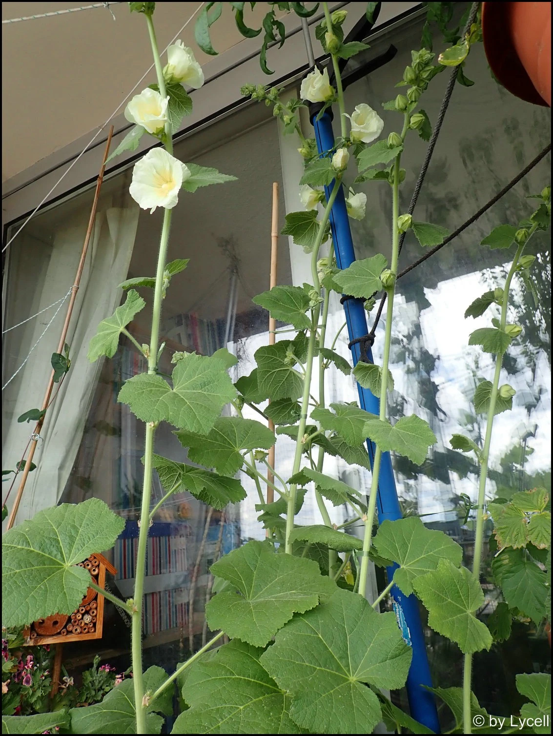 Die ersten Blüten der Stockrose sind jetzt offen. Und sie sind cremeweiß. Nun ja, hätte gerne die Farbe von meinem Avatar, aber letztlich kann ich es ja eh nicht mehr ändern. Hm, die dritte Stockrose, die ich letztes Jahr säte, sieht anders aus, feste, etwas krausere Blätter. Und die will heuer (noch?) nicht blühen. Wenn ich noch eine weitere Pflanze säe, wann wäre ein guter Zeitpunkt? Januar letztes Jahr war ja zu spät für Blüte im gleichen Jahr.