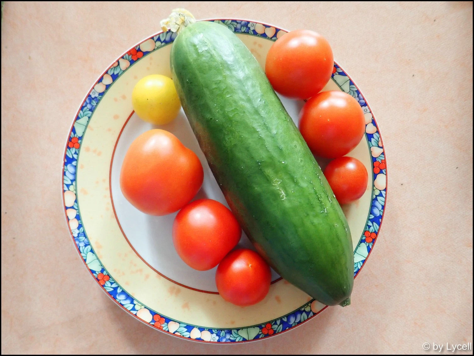 Es geht langsam los mit Tomaten. Ist doch besser als immer nur Gurke pur.