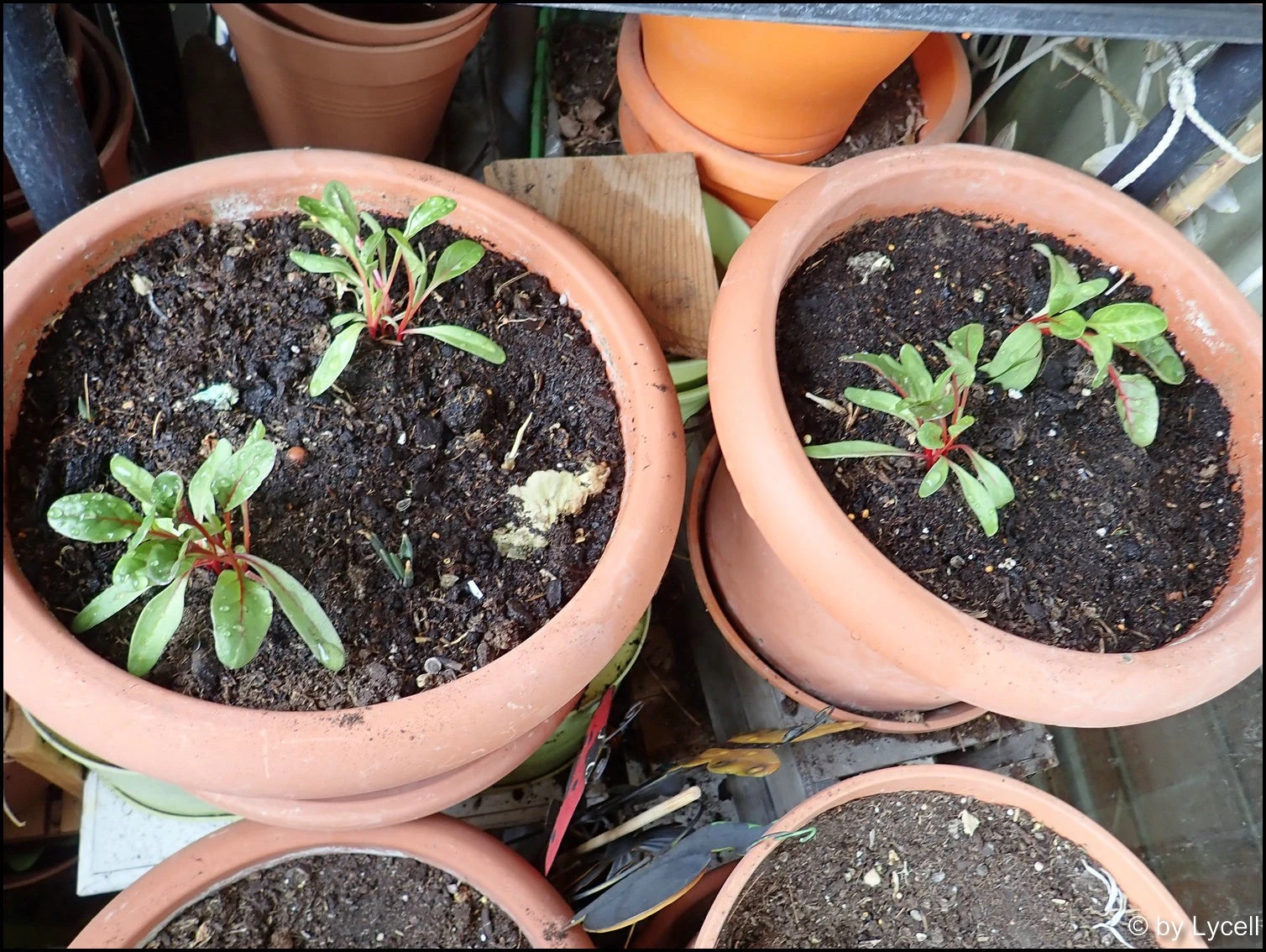 Mangold ist vereinzelt, was aber wohl nicht jeder Setzling überlebt hat. Ein paar wirken sehr welk. Mal abwarten.