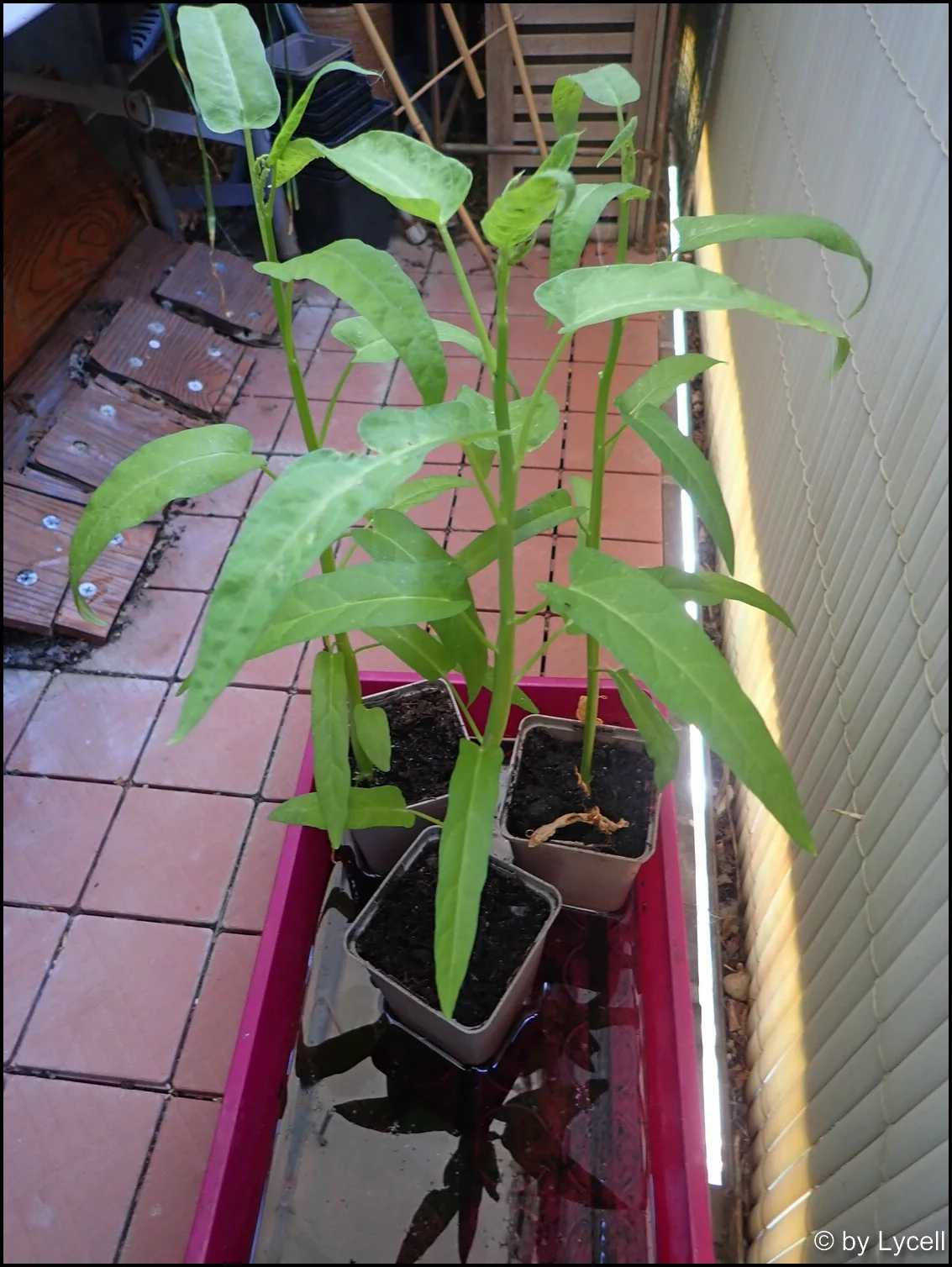 Anders als die Tomaten wächst der Wasserspinat bis jetzt wirklich fröhlich in die Höhe. Den größten könnte ich schon ernten - aber der soll ja auswachsen und blühen, wenn alles gut geht. Bin selbst gespannt.