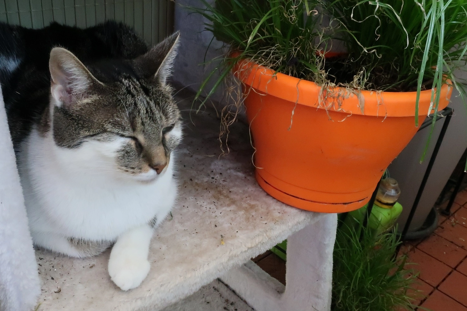 brauchte ich schon die Stehleiter, hab der dann aber gleich die Köpfe genommen, weiter darf sie nicht, ist eh schon an der Dachrinne angelangt im Innenhof.