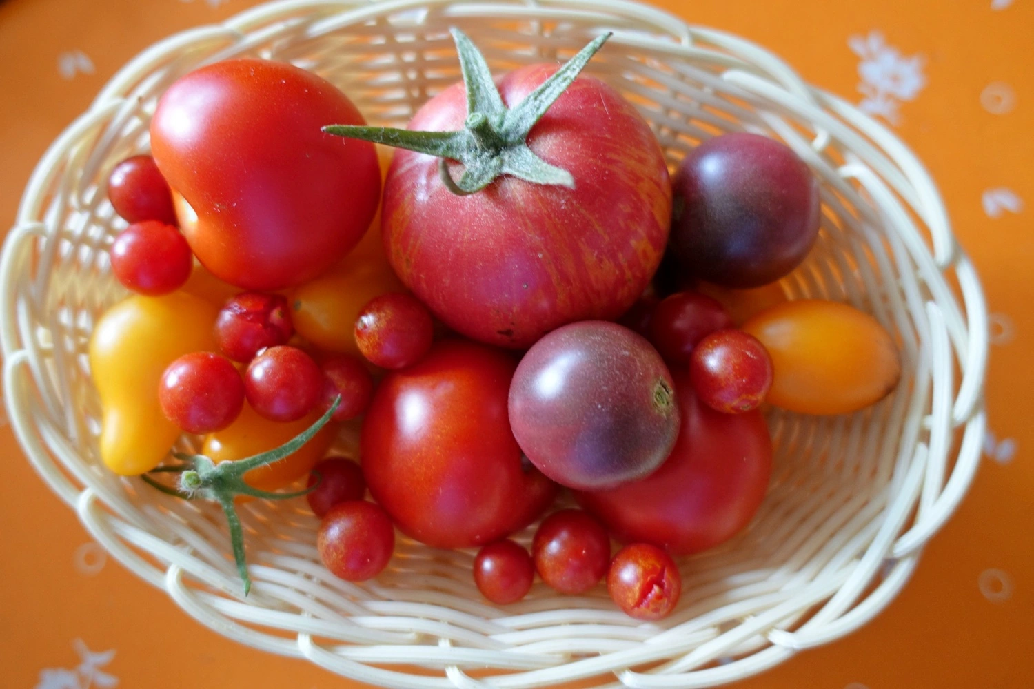 Heute noch einmal viele Tomaten geerntet. Zu viele. Gab es eben ein kleines Körbchen für die Nachbarin, die sich riesig gefreut hat.