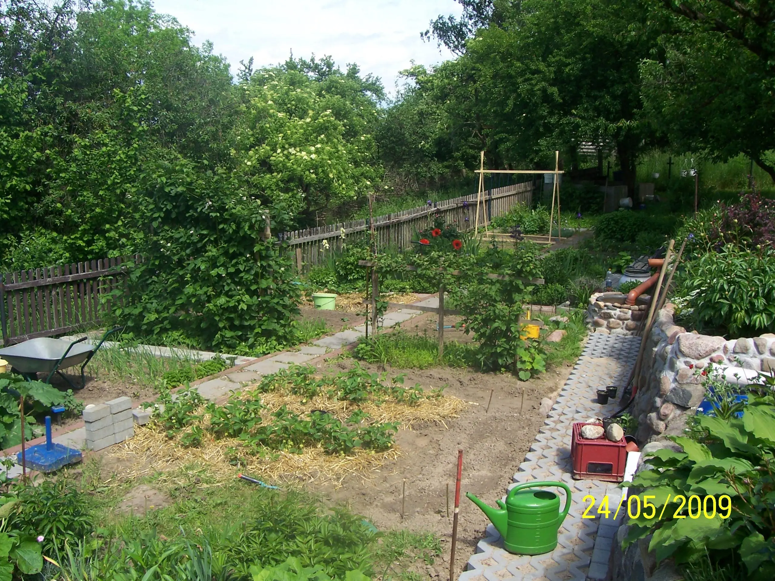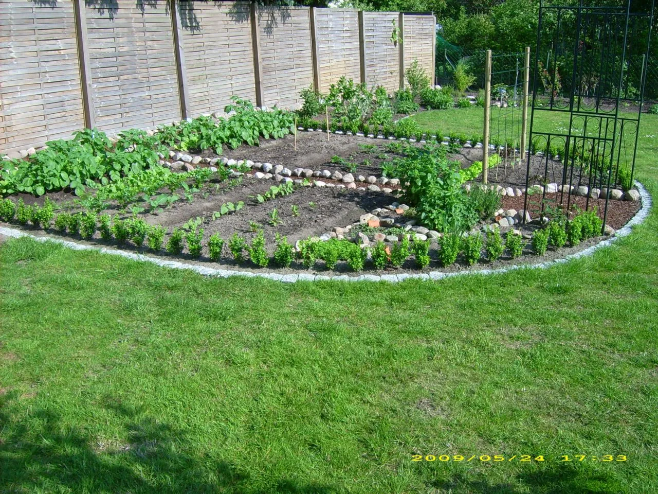 @ Stupsi: Naja, das mit den Steinen ging eigentlich, so groß sind sie ja nicht. Erst hatte ich dort nur den Rindenmulchweg, aber da sich das (oder der?) Rindenmulch ständig mit der Erde aus dem Beet vermischte, mußte irgendwie eine Trennung her. Und da wir die Steine hier umsonst von einem bekannten Bauern bekommen, bot sich das an.