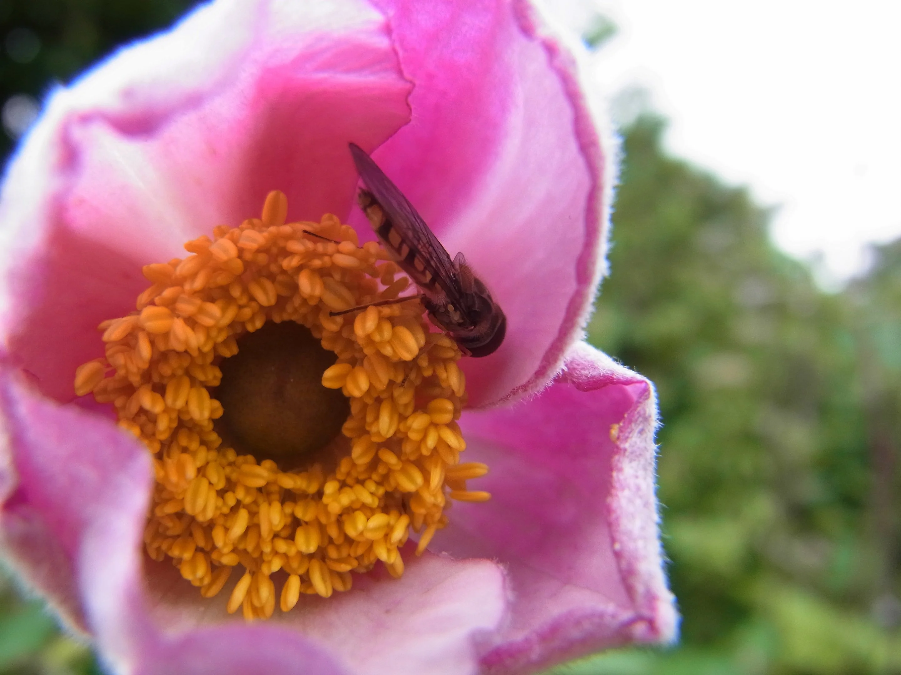 Deine Schwebfliegenseitenansicht ist tatsächlich selten. Die Leute (ich auch) halten die Kamera einfältigerweise immer auf die Oberseite!![]()