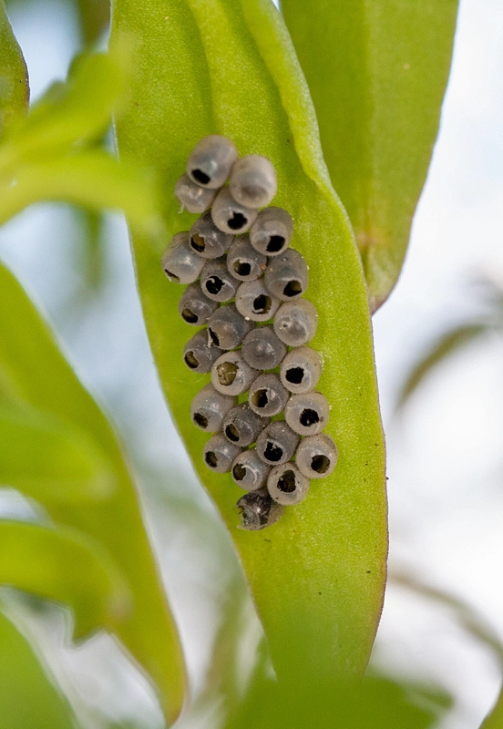 • Faszinierend: Ich las zu einer Wanzenart, dass die Weibchen immer genau 28 Eier legen. Das ist bei dir so und auch den Eiern, die ich heute fand - ich musste natürlich gleich nachzählen. :-)