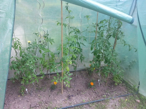 Endlich ist jetzt in den Tomatenzelten wieder Ordnung und ich hab alles gedüngt und triebe aufgebunden. Die etwas vernachlässigten topftomaten haben eine portion pflege bekommen und ein paar Paprika sind aus dem großen Zelt in den topf gewandert.