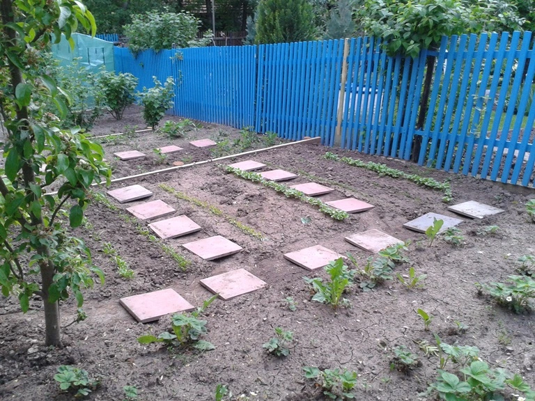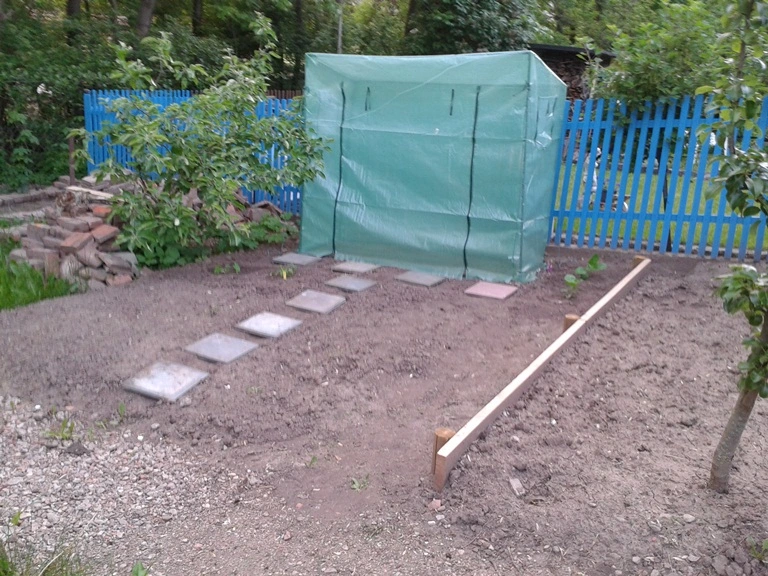 So, und morgen machen wir zum zweiten Mal den Grundkurs "Ich erkenne, wo ein Beet und wo ein Weg ist" für Dreijährige *gg* Extra heute Trittplatten ausgelegt. Wenn sie das anerkennt, werden Salat und Radieschen ihr sehr dankbar sein ;-)