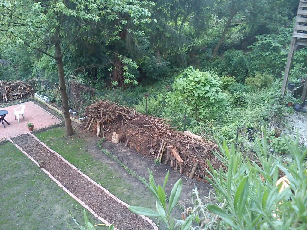 die alten Bretter sind leider völlig durchnässt und stellenweise schon so verfault dass man sie mit den Händen zerreiben kann. Aber weil der Abtransport aus diesem Garten wirklich nicht einfach ist, haben wir alle Bretter (oder was davon übrig ist) ordentlich gestapelt und an den Rand gelegt. Dort wollen wir bald eine Plane drüber spannen. Aber jedes mal wenn sich die Gelegenheit bietet werde ich versuchen das Zeug zu entsorgen. Das ist wirklich nicht mehr zu gebrauchen.