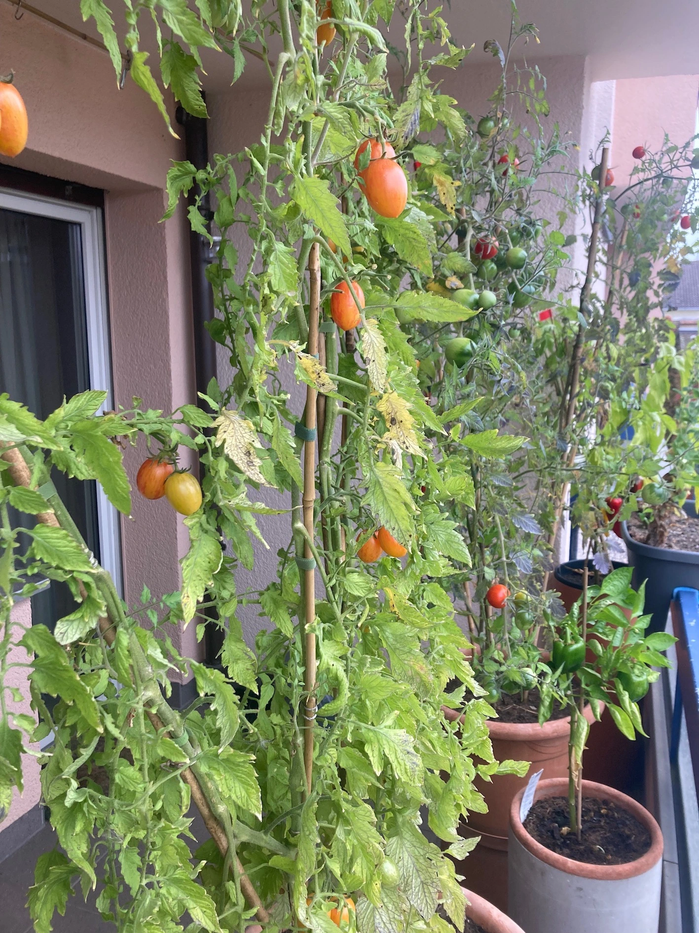 Die Paprika sind bald abgeerntet und dann könnten die Zuckerhüte in deren tiefe 10-Liter-Eimer