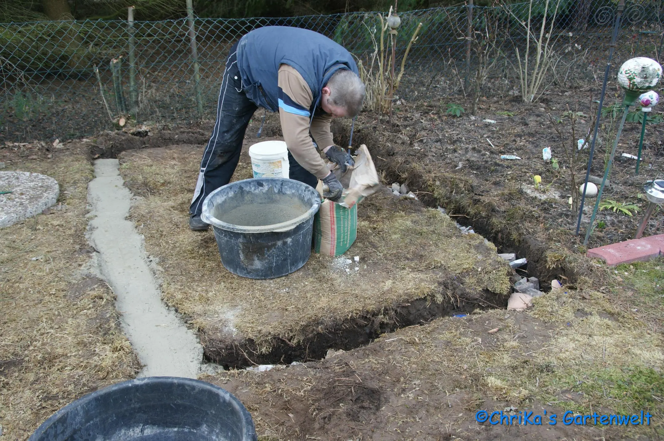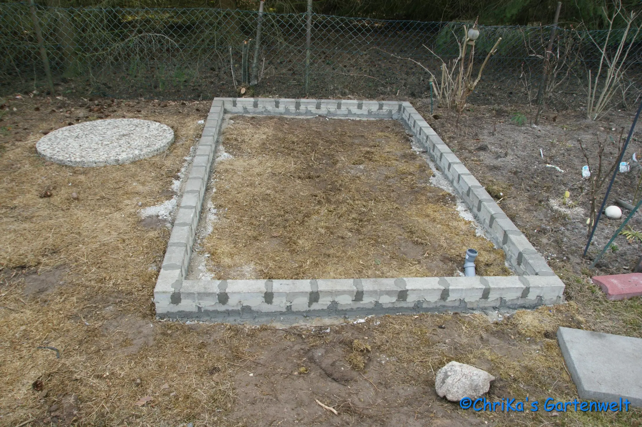 Oder nur ein Punktfundament (GöGa findet es gut, ich nicht - da wächst mir doch alles Wildkraut völlig ungehemmt rein - grrr).