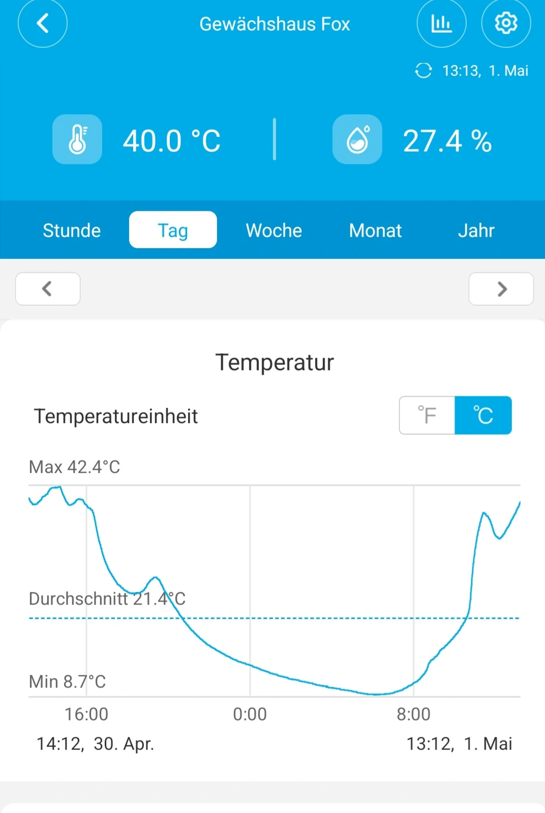 Nein, vor dem Gewächshaus.Aussentemperatur aus dem wetterbericht?