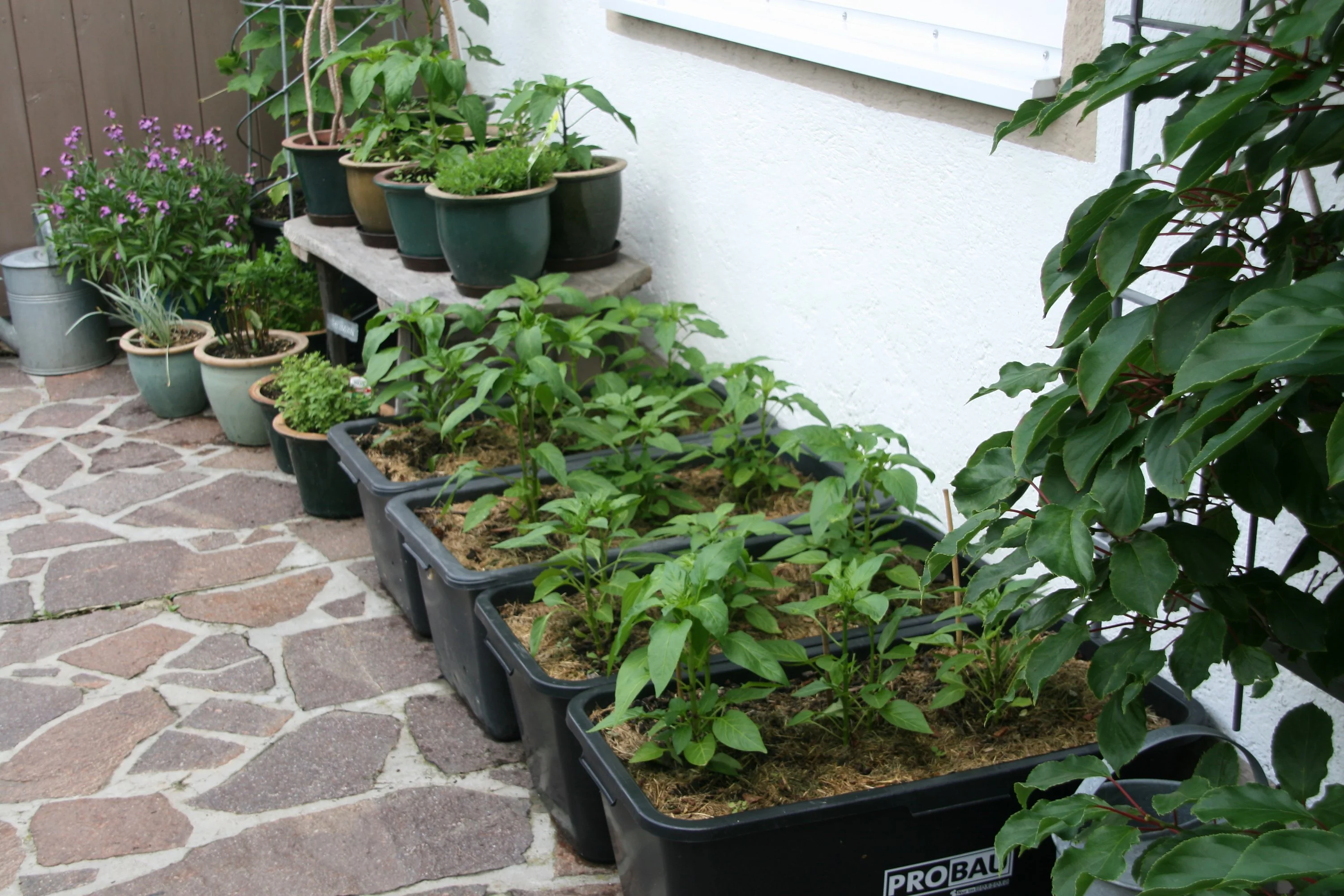 Aber du kannst Töpfe oder notfalls aufgeschnittene Pflanzbeutel doch bestimmt übergangsweise im Hof platzieren. Oder geht das nicht?