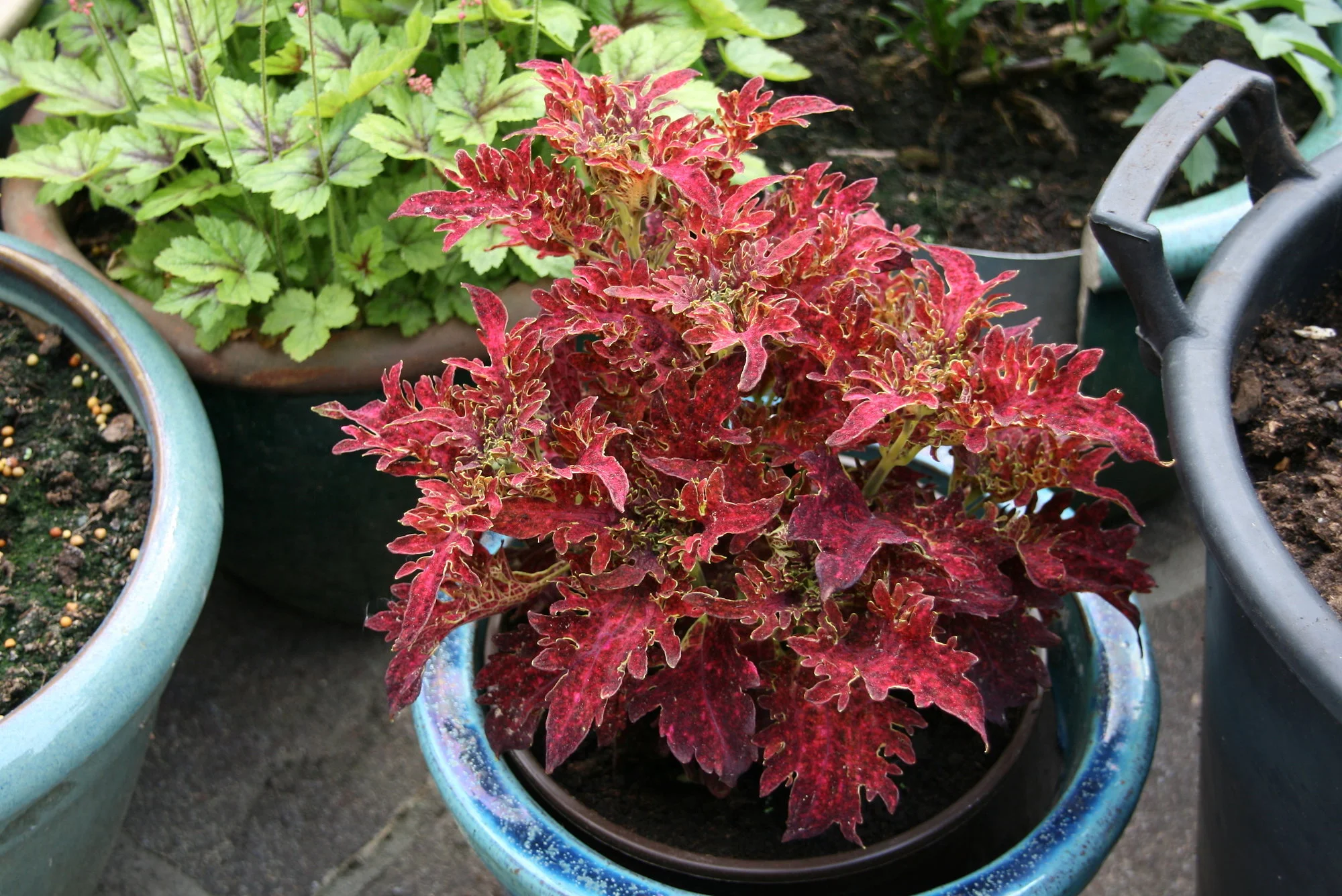 . Morgen will ich sie gleich noch in größere Töpfe pflanzen, aber noch nicht rausstellen, bzw.tagsüber schon aber nachts wieder rein. Die 5te Sorte seht ihr bei Nr.2007. Das letzte Bild, diese Kombination mache ich heuer wieder. Da habe ich mir von der Buntnessel einen Ableger gemacht. Das mache ich mit den anderen von heute auch wieder. Wer weiß ob ich diese Sorten nächstes Jahr wieder bekomme. Von der Buntnessel auf dem 4.Bild, der schneide ich die oberene Teile ab und mache mir noch eine. Die kann ich ja dann verschenken. Das letzte Bild habe ich noch nachgereicht, da sieht man die Farben schöner, besonders von der gezackten Buntnessel.