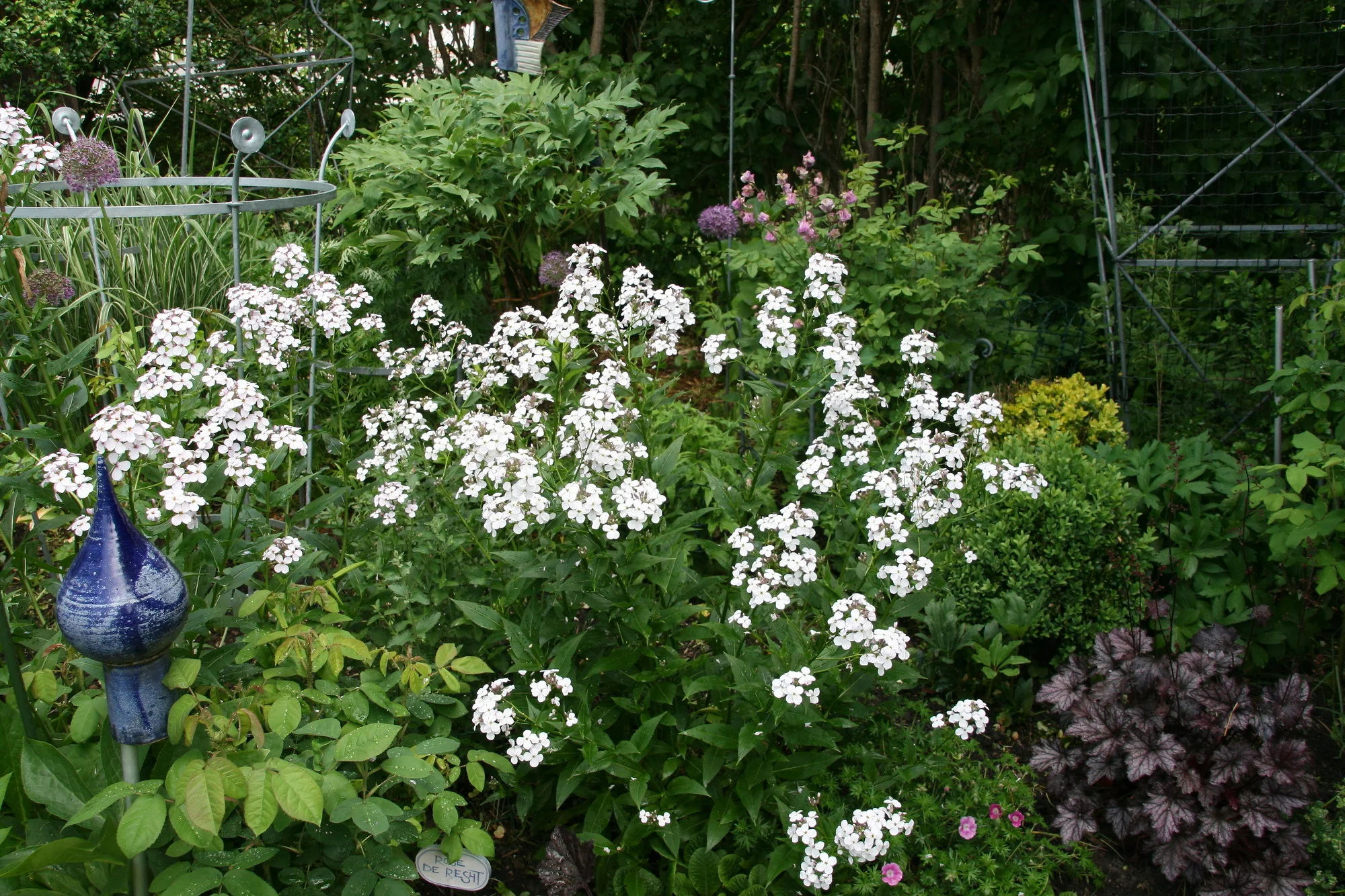 Dass es Nachtviolen auch weiß gibt, wusste ich nicht, ich hatte sie in rosa-lila, aber sie sind leider Gierschopfer geworden. Davor schützt auch der fleißigste Selbstaussaatwille nicht ... nach 2 Jahren hatte derGiersch die Nachtviolen einfach überrannt. Jetzt hab ich grad noch 1 einzigen Stiel entdeckt ...
