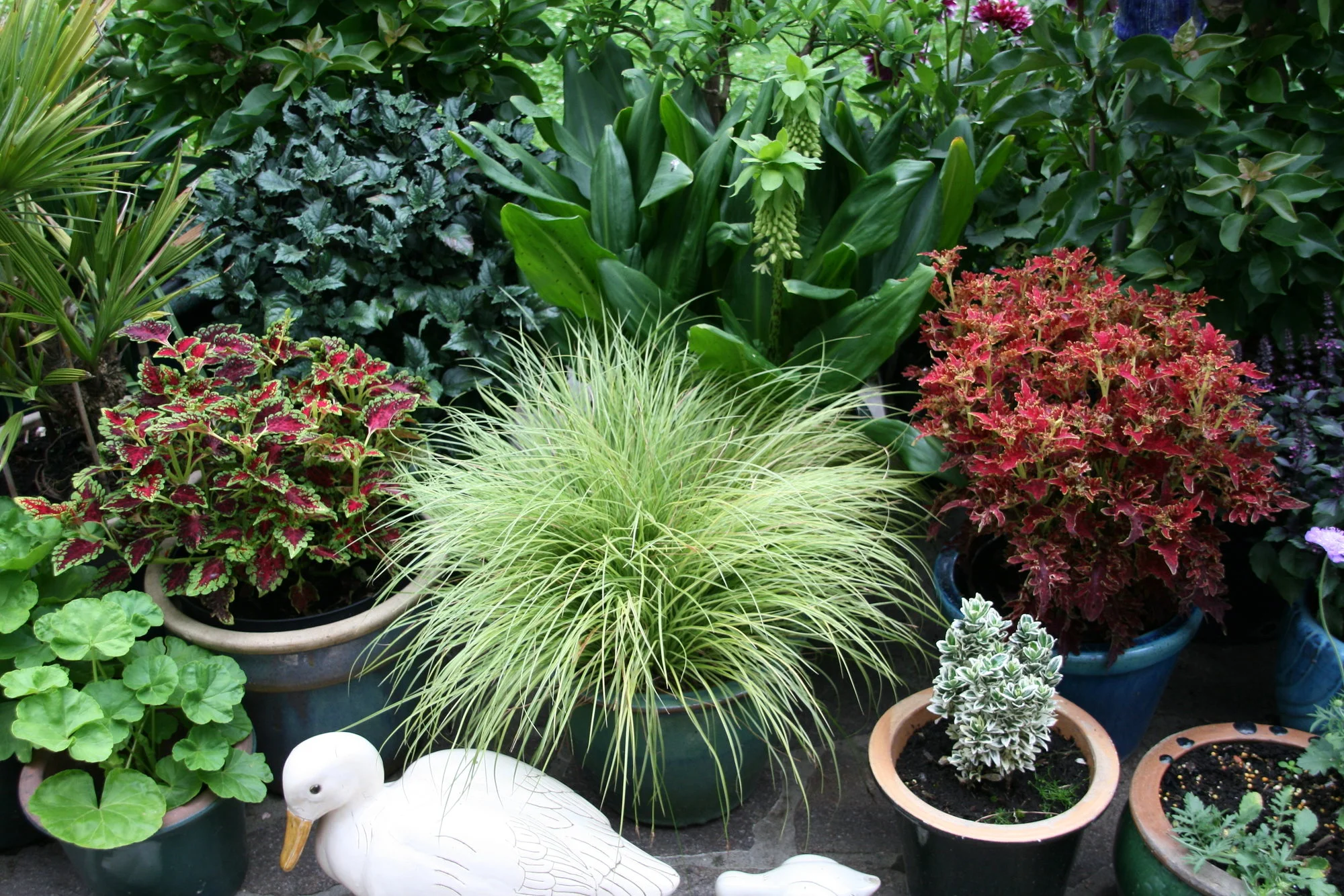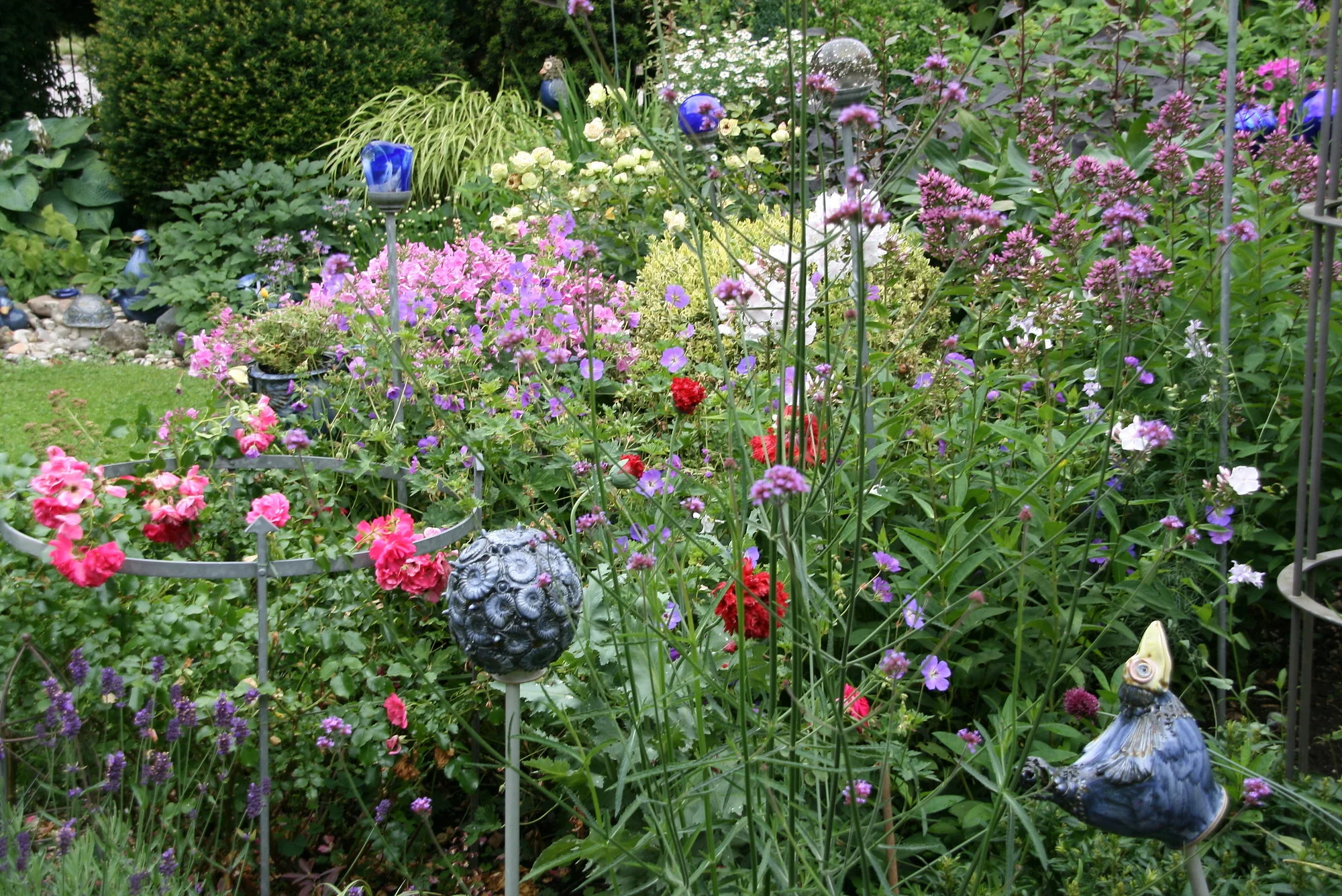 • Meinst Du die Bilder von 2 101 ? Das war die Keramikerin, die hat bei mir immer ihre Ware hindekoriert und dann natürlich auch viel verkauft. Sie hat mir gesagt, sie verkauft bei mir an dem Wochenende mehr, als das ganze Jahr auf den diversen Märkten. Weil es im Garten ganz anders wirkt und die Leute dann scheinbar kauffreudiger sind. Die kam mindestens 10 Jahre hintereinander zu mir. Die hatte schöne geschmackvolle gute Ware, winterfest und normale Preise. Da ist natürlich auch so einiges bei mir im Garten geblieben ;).