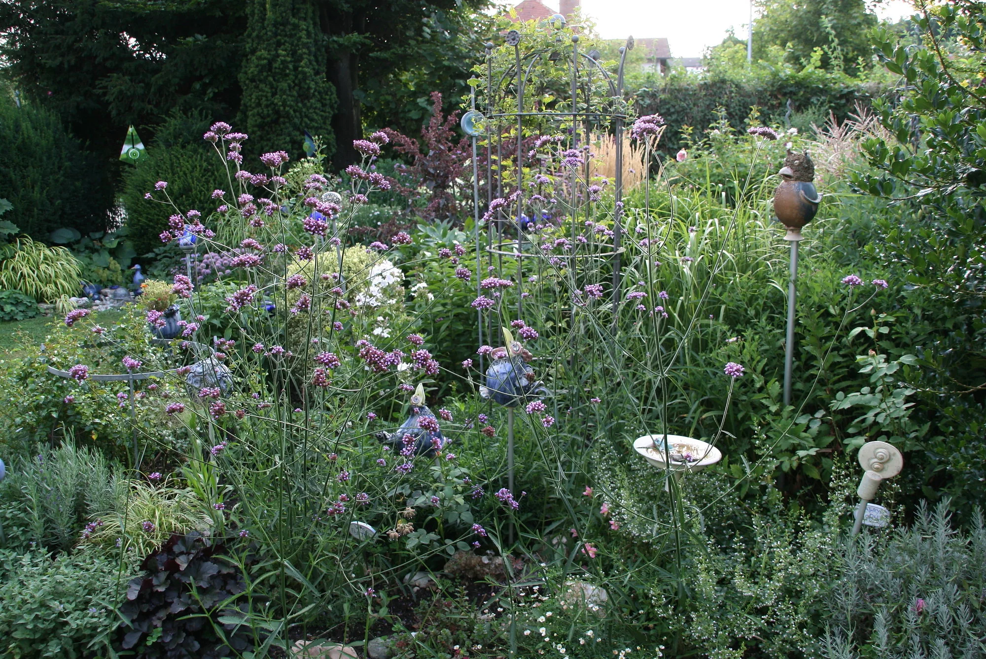 Das kletternde Löwenmäulchen ist so schön geworden. Das lasse ich übern Winter dürr werden im Schuppen, schüttle im Frühling den Samen auf die alte Erde und gieße nur. Auf einmal gehen die Samen auf, das hier ist das Ergebnis. Habe 2 Säulen davon. Die mag ich so gerne. Auch die rote Melde macht sich schön in den Staudenbeeten. Ich lasse sie blühen und aussamen. Habe dann im nächsten Jahr wieder viele Pflänzchen. Reiße aus was ich denke und lasse stehen wo es paßt.