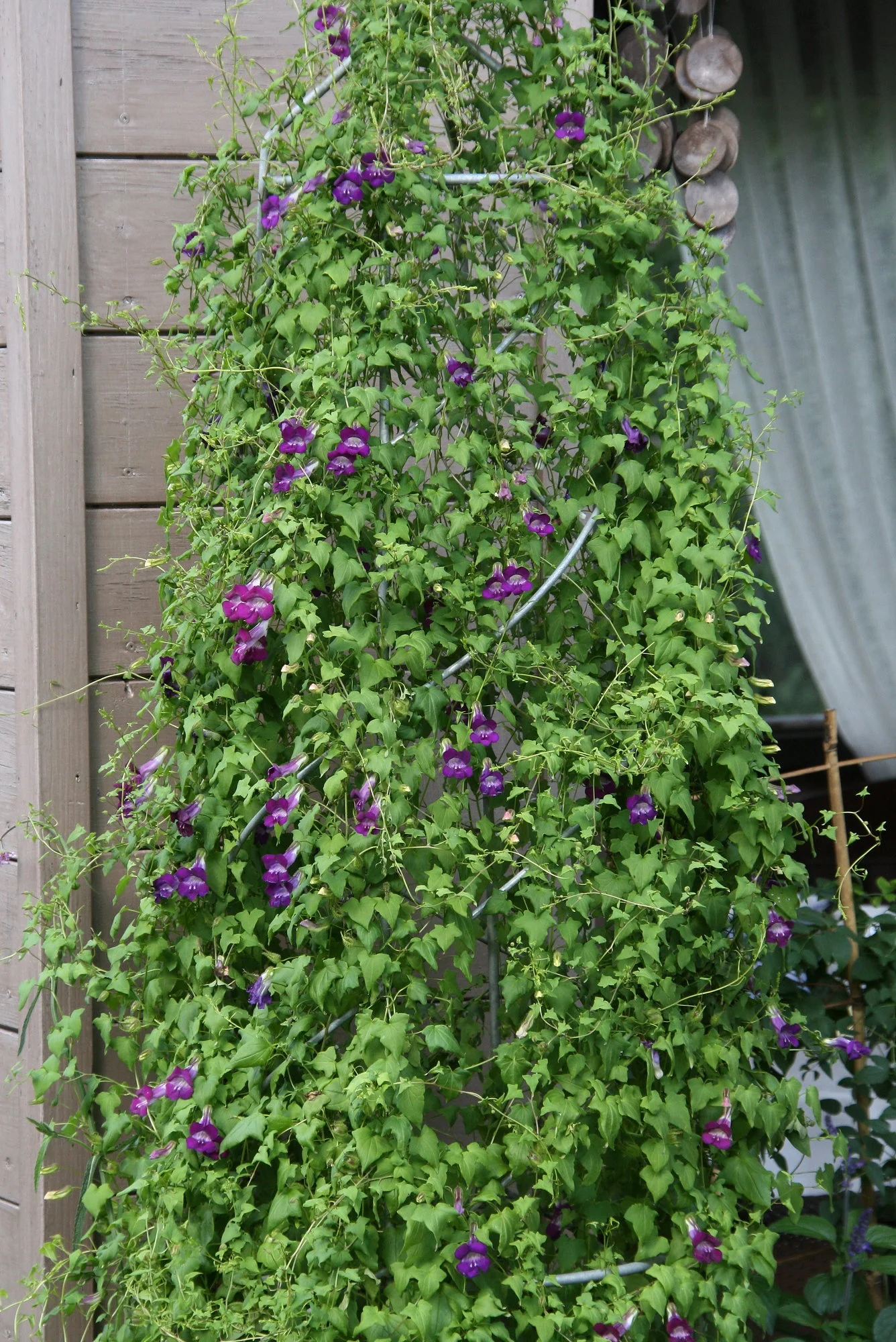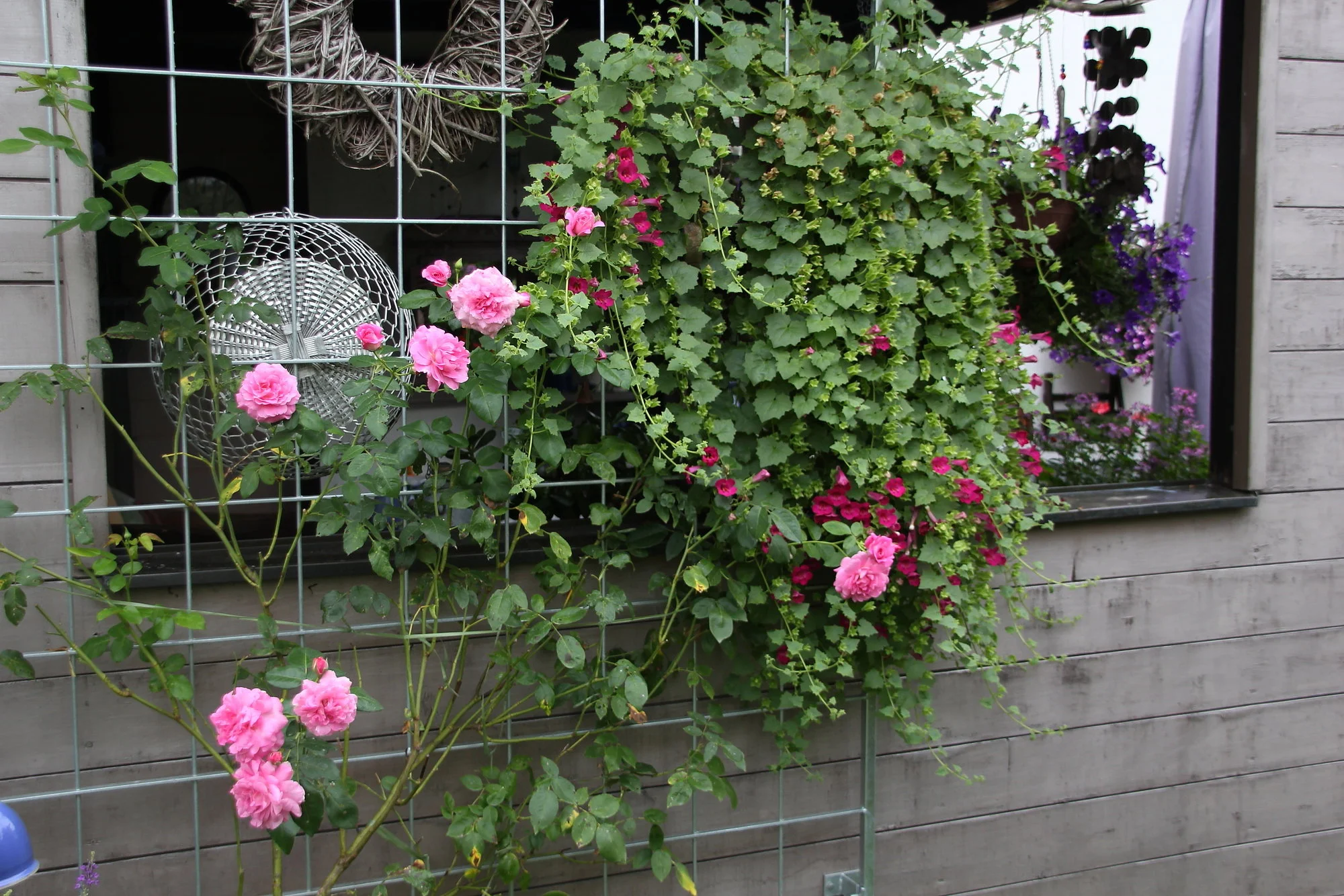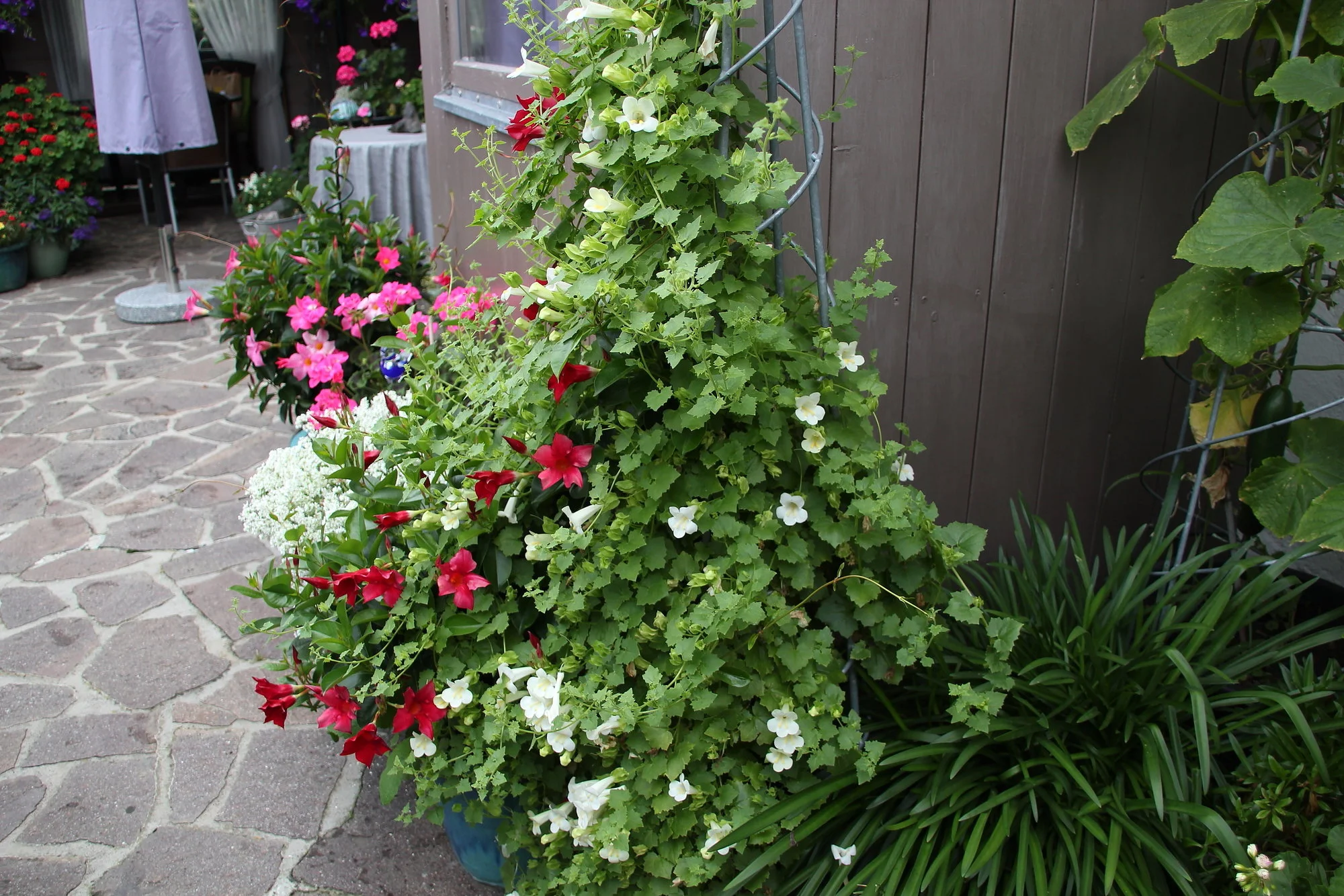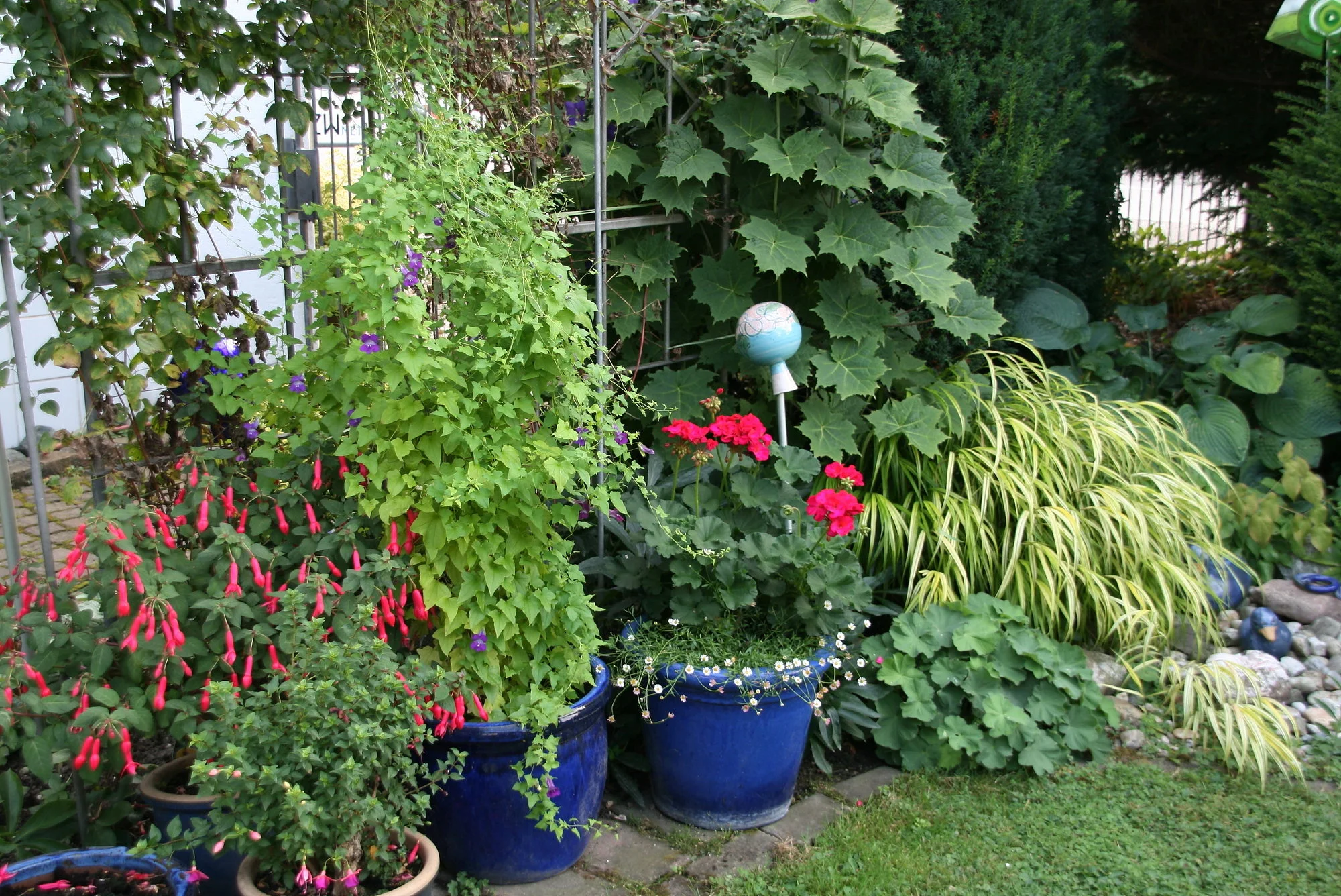 Auf dem Bild steht auch eins, das wächst jetzt in die verblühte Clematis rein. Das sieht so witzig aus.Ich habe die blauen Löwenmäulchen schon viele Jahre.