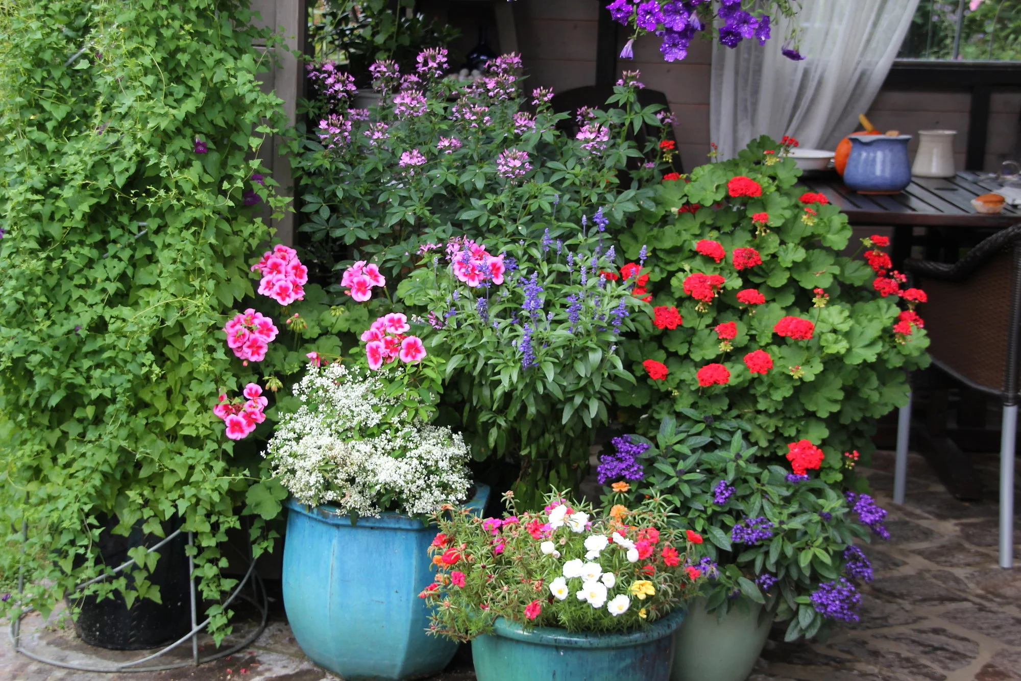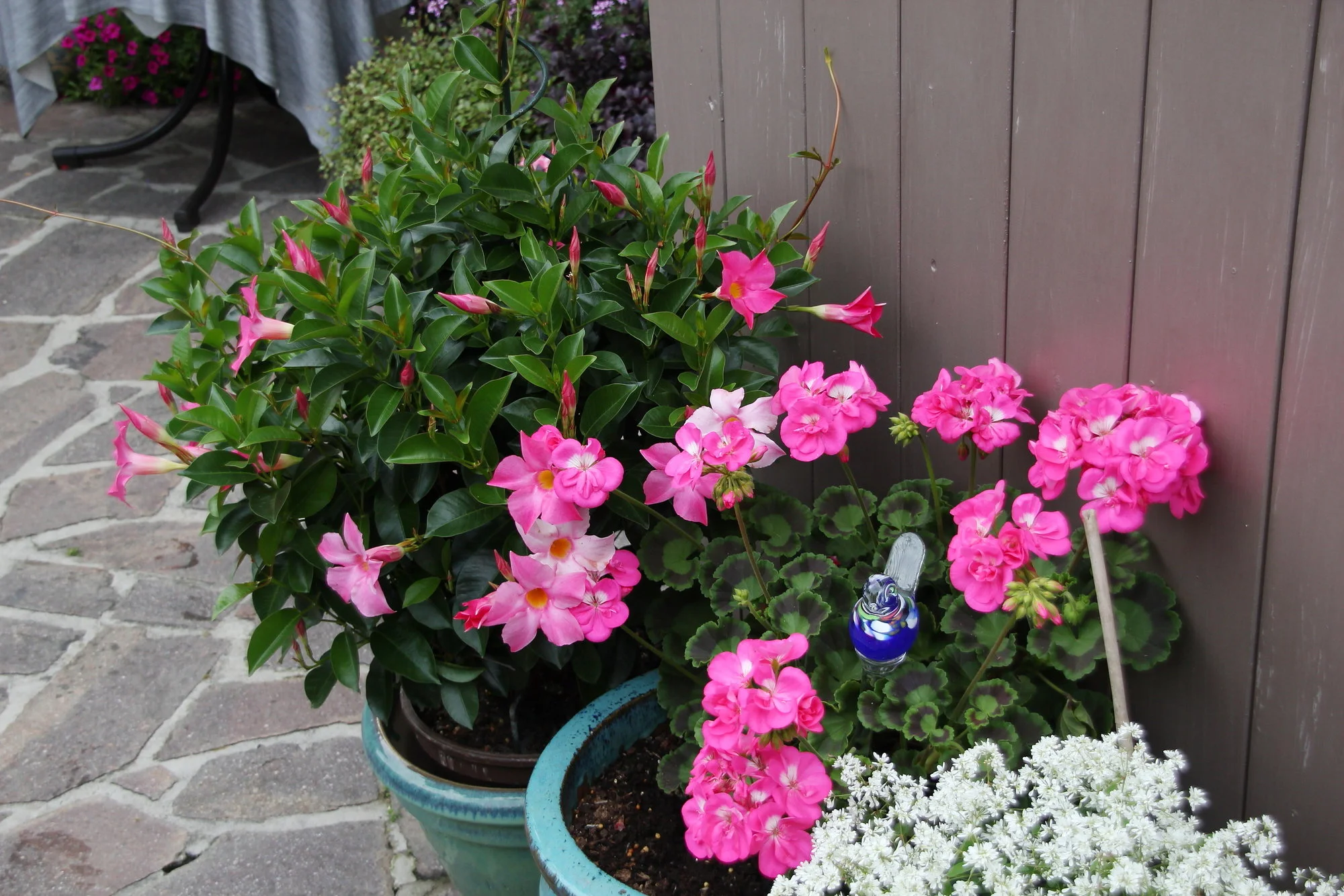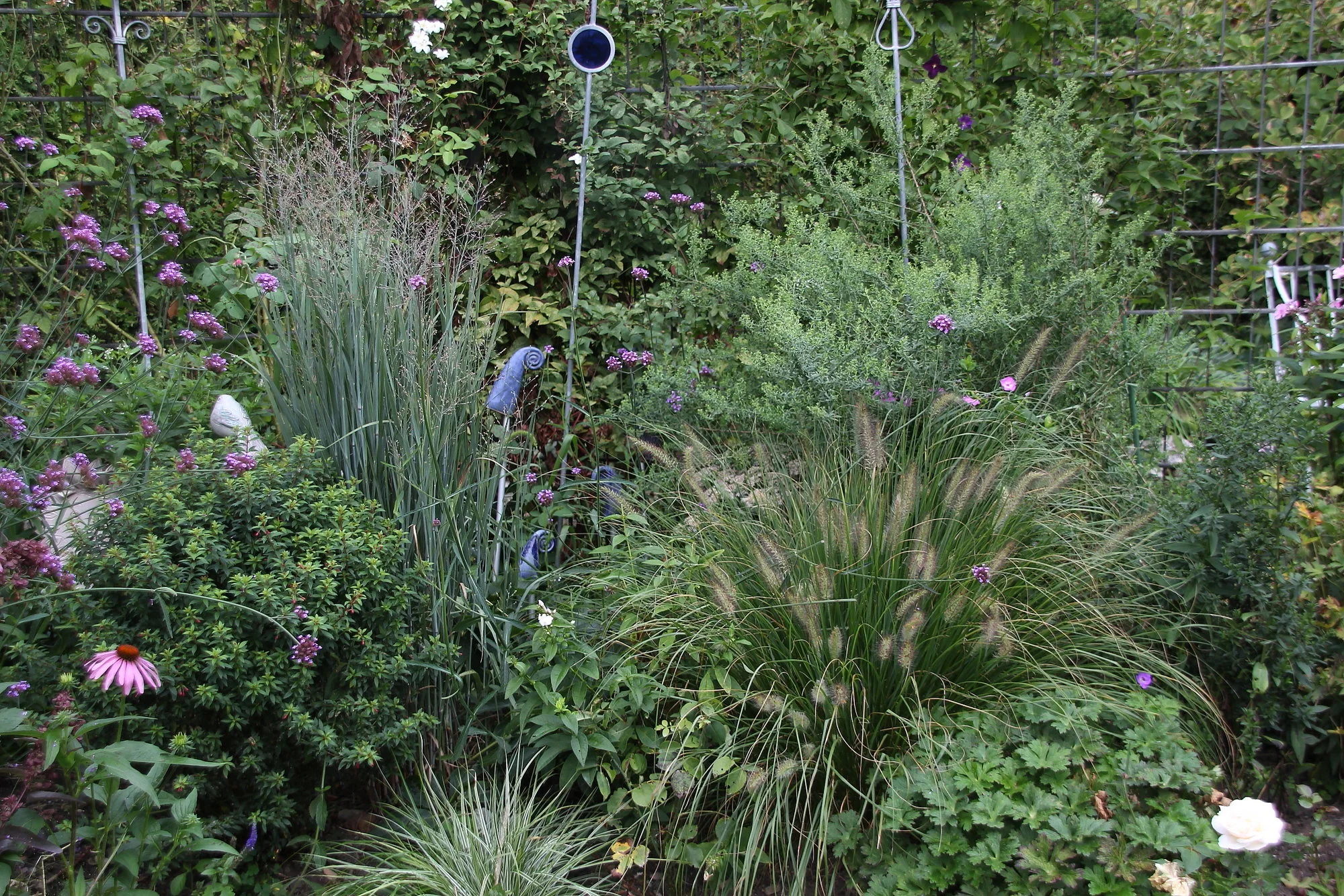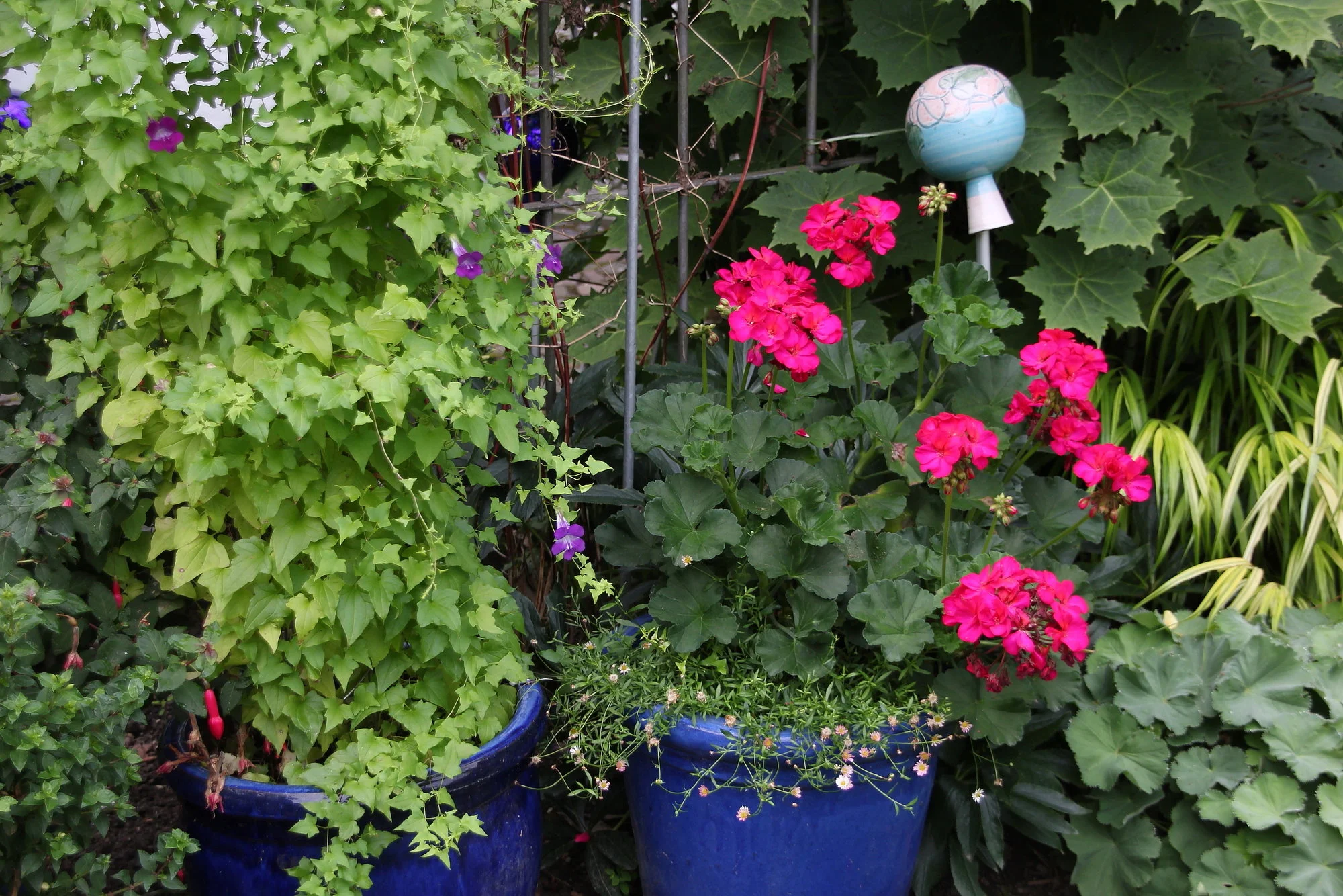 Auf dem Bild steht auch eins, das wächst jetzt in die verblühte Clematis rein. Das sieht so witzig aus.Ich habe die blauen Löwenmäulchen schon viele Jahre.