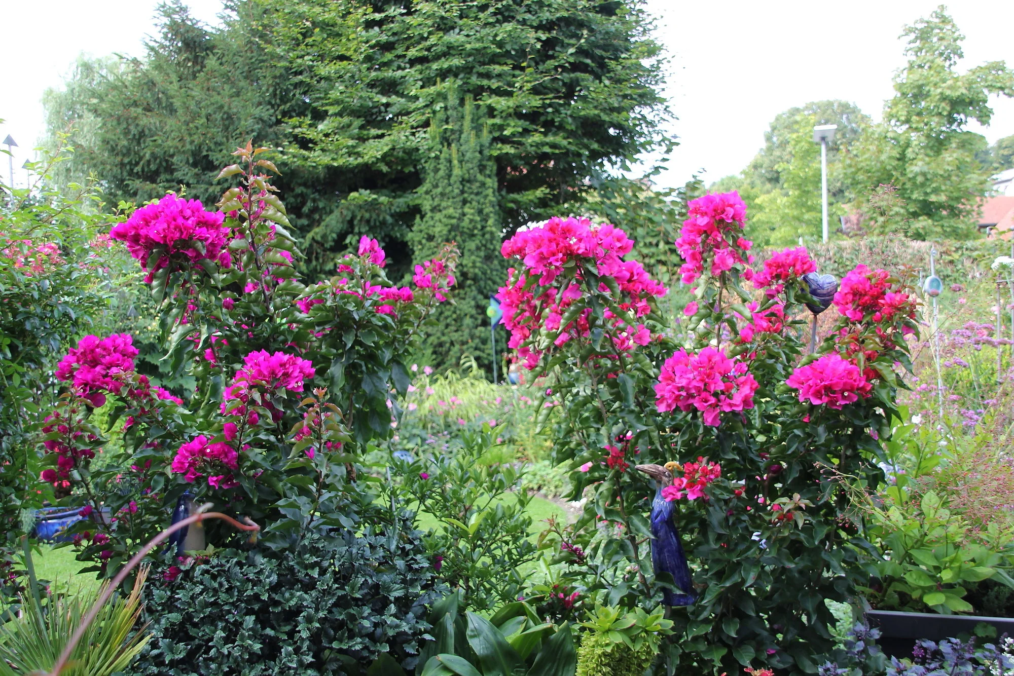 • Meine Bougenvilleas sind jetzt so schön, die sind schon uralt.