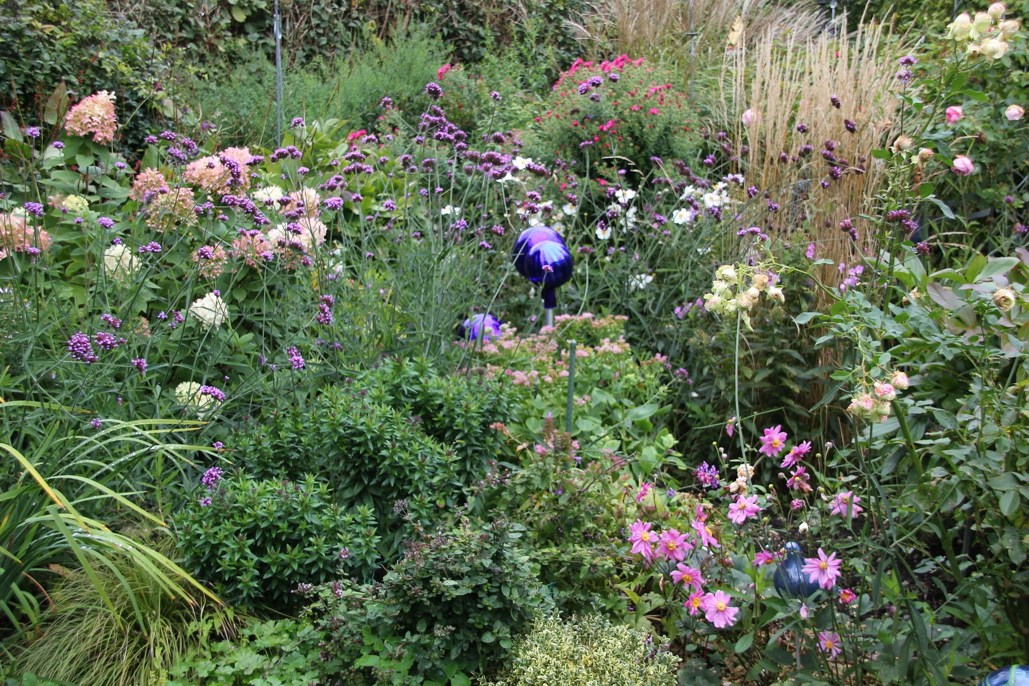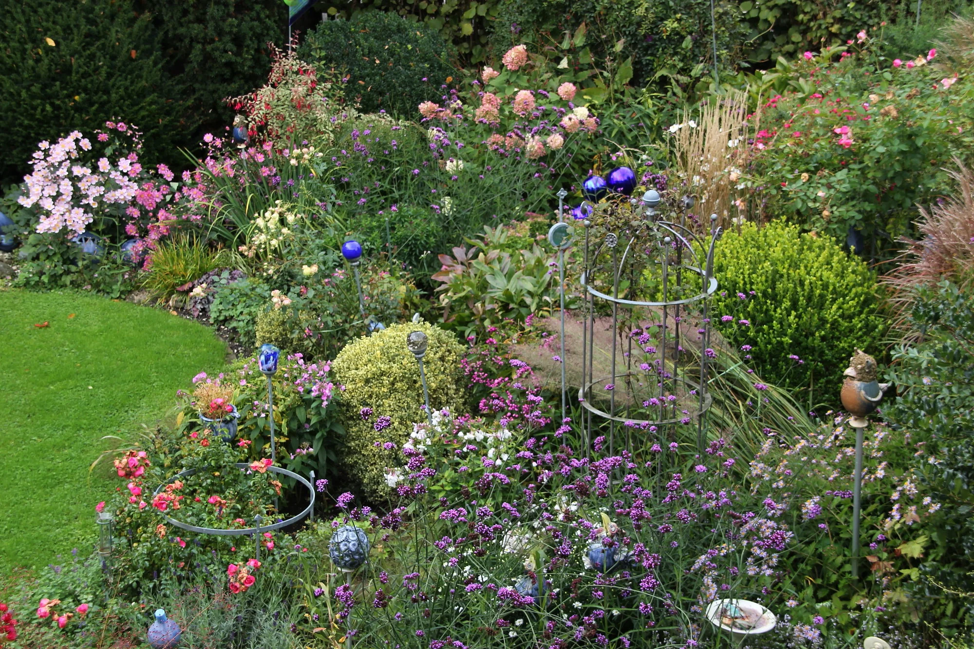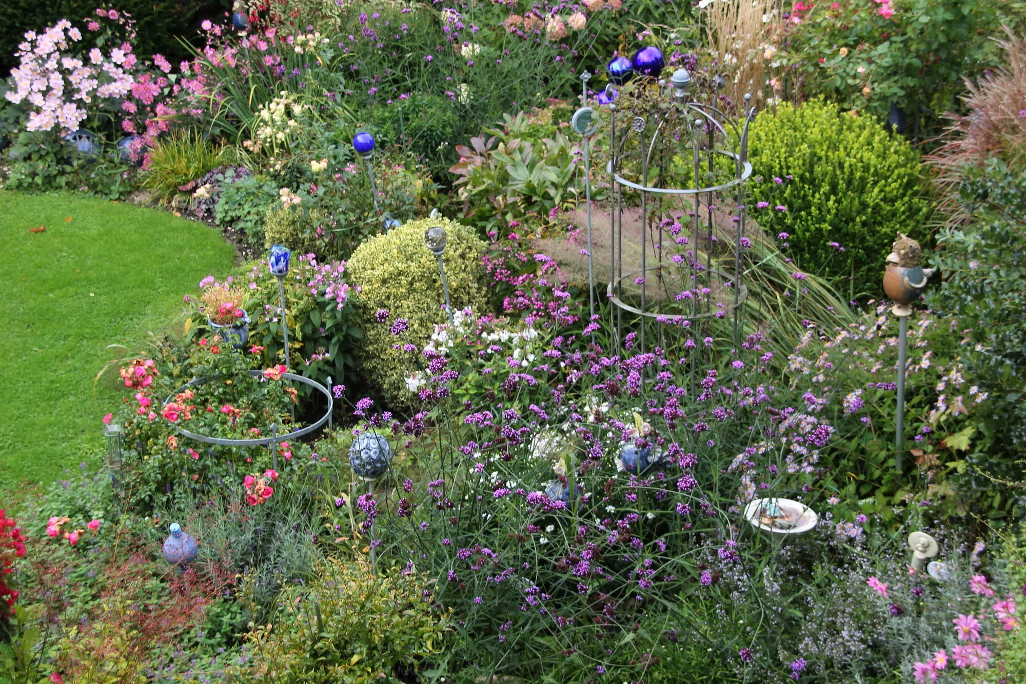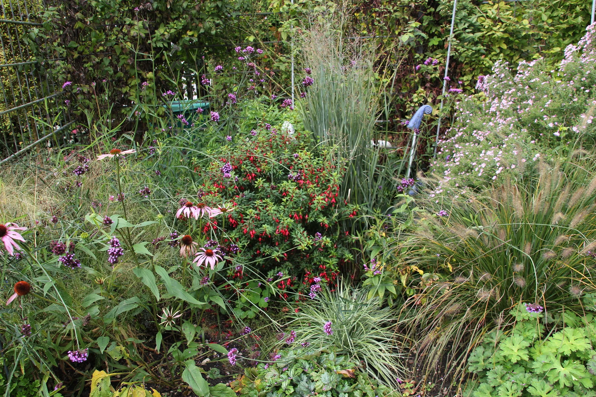 • Heute mal wieder Bilder vom momentanen Zustand. Durch den vielen Regen ist es jetzt nicht mehr so schön. Die ersten 4 Bilder habe ich vom 1.Stock aus gemacht. Werde dann nächste Woche schon mal anfangen mit dem herbstlichen Rückschnitt. Die Gräser stehen jetzt auch in voller Schönheit da. Die schmücken übern Winter den Garten.