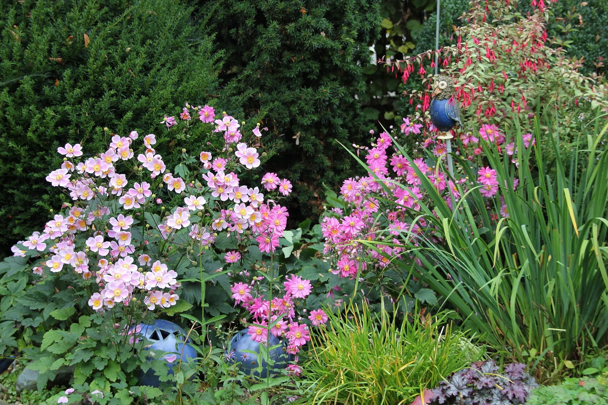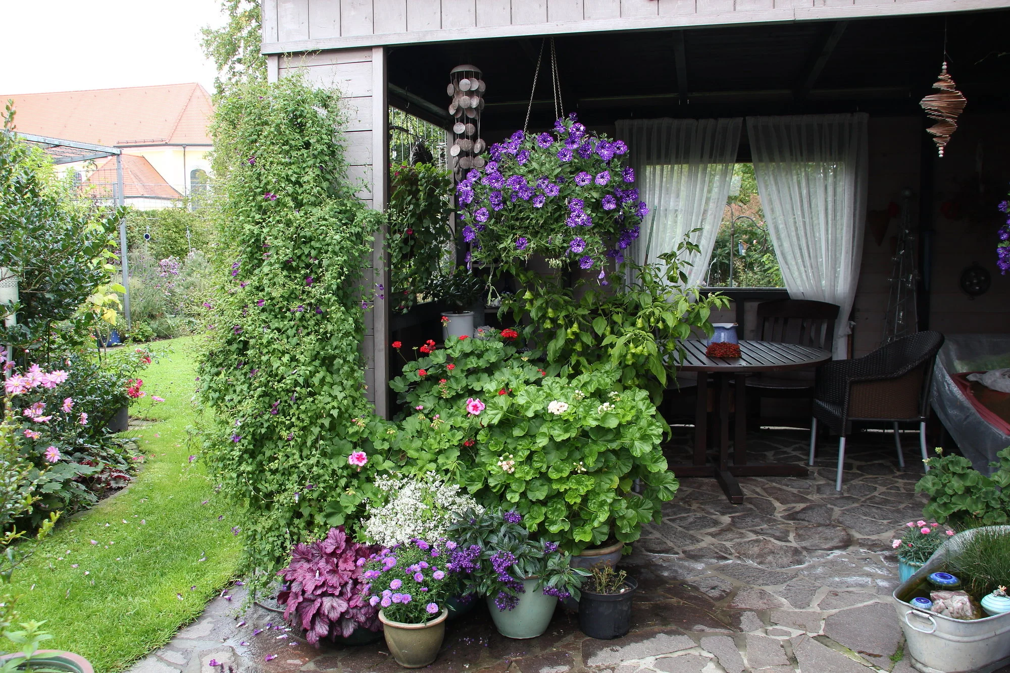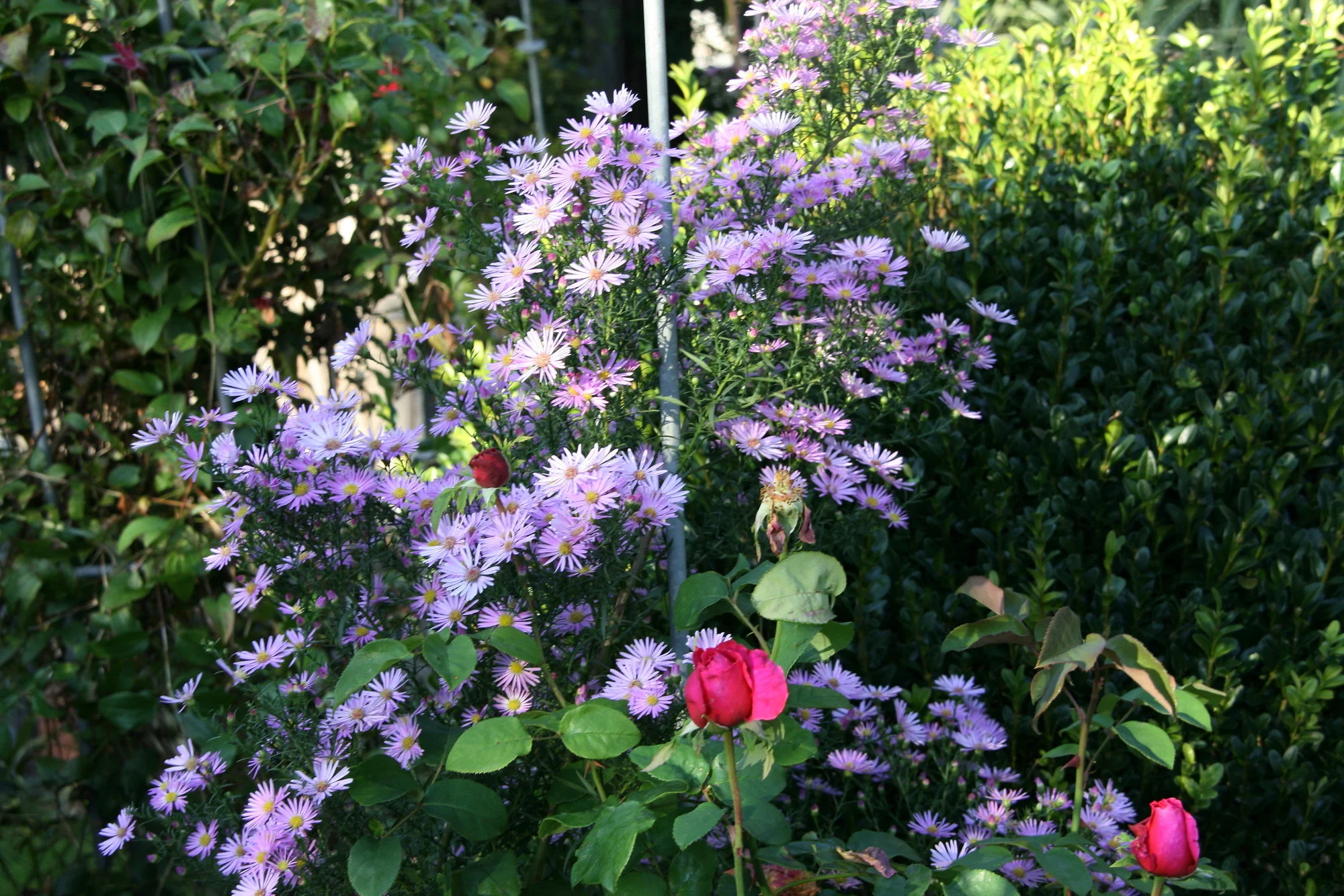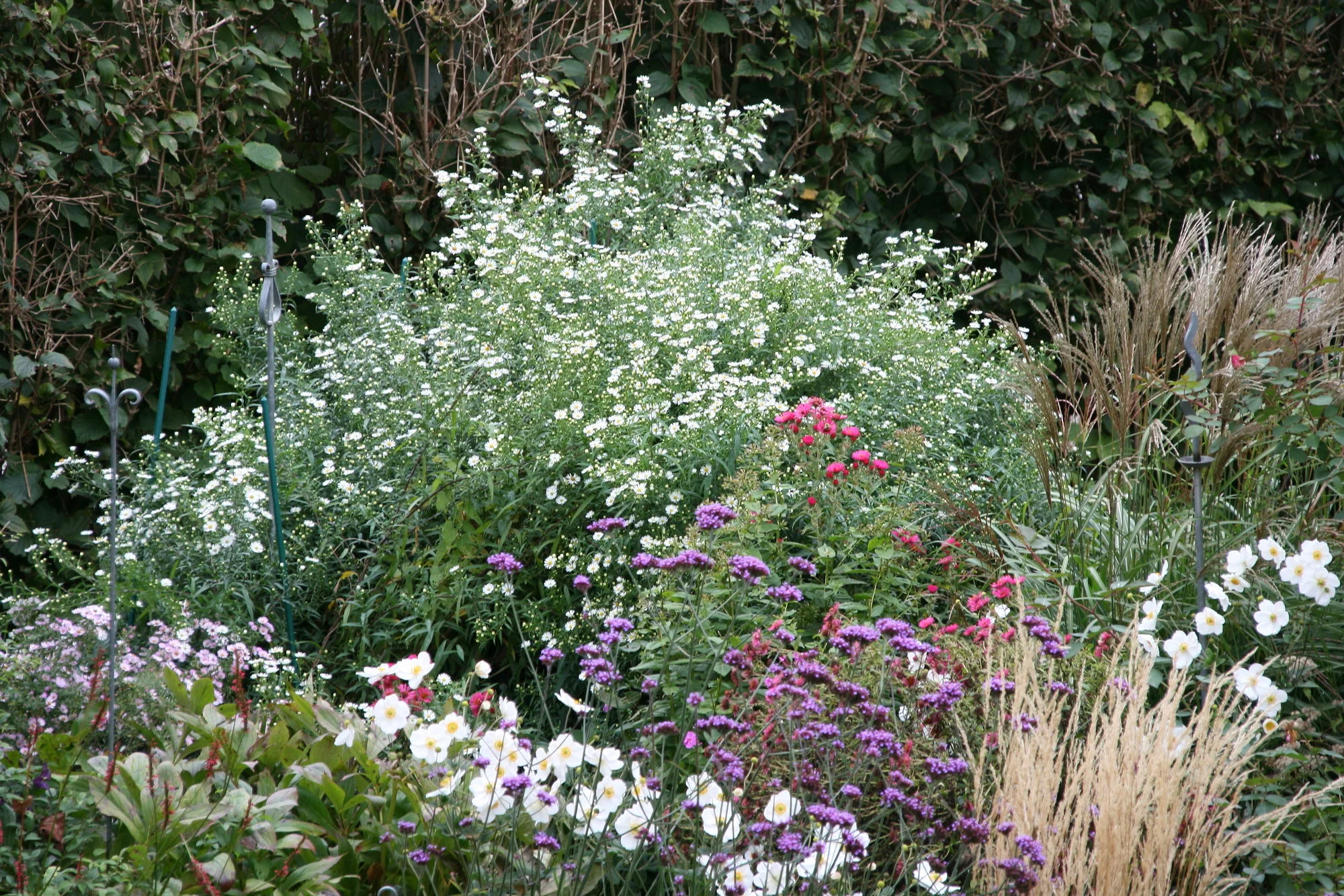 • Heute mal wieder Bilder vom momentanen Zustand. Durch den vielen Regen ist es jetzt nicht mehr so schön. Die ersten 4 Bilder habe ich vom 1.Stock aus gemacht. Werde dann nächste Woche schon mal anfangen mit dem herbstlichen Rückschnitt. Die Gräser stehen jetzt auch in voller Schönheit da. Die schmücken übern Winter den Garten.