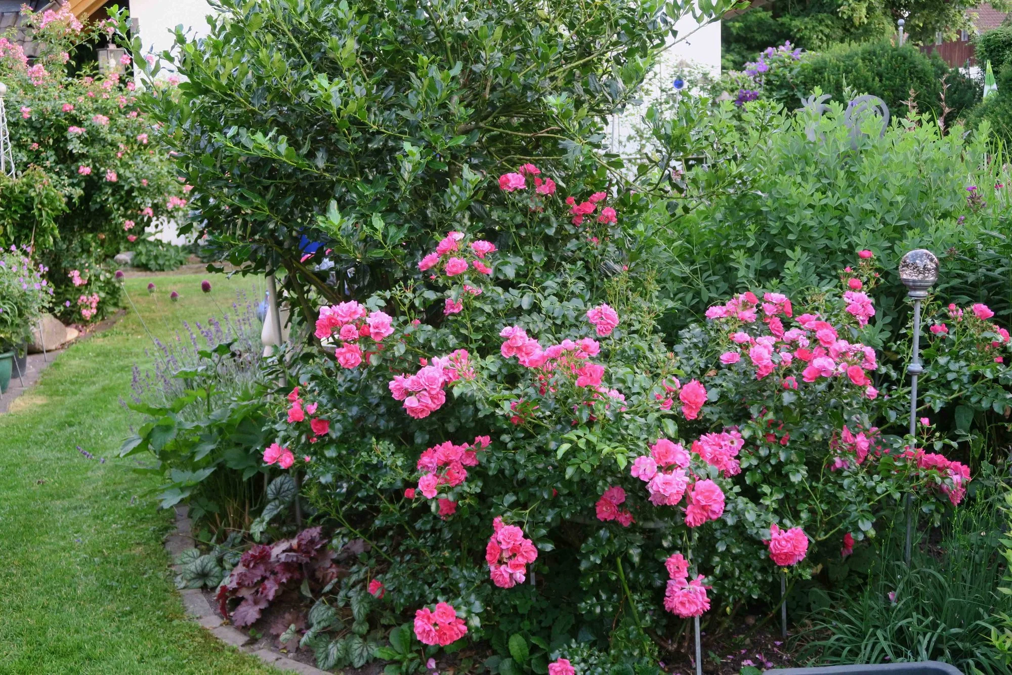 So sieht es momentan aus, gestern habe ich bei meiner Juanita alles verblühte abgeschnitten, eine ganze Schubkarre voll Material wurde es und das fällt gar nicht richtig auf. Sie hat schon die neuen Blütenstände produziert. Es wird durchgeblüht :D