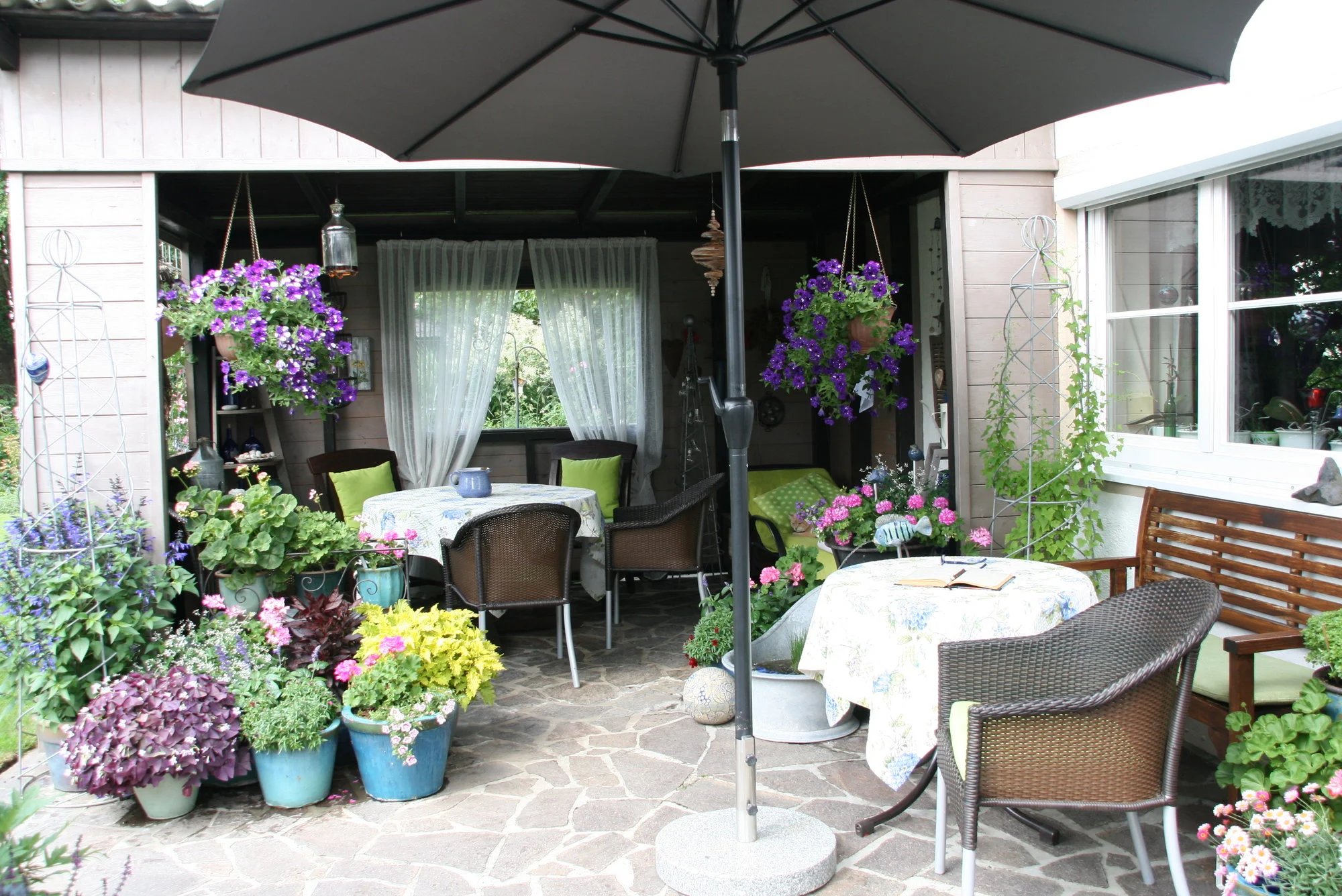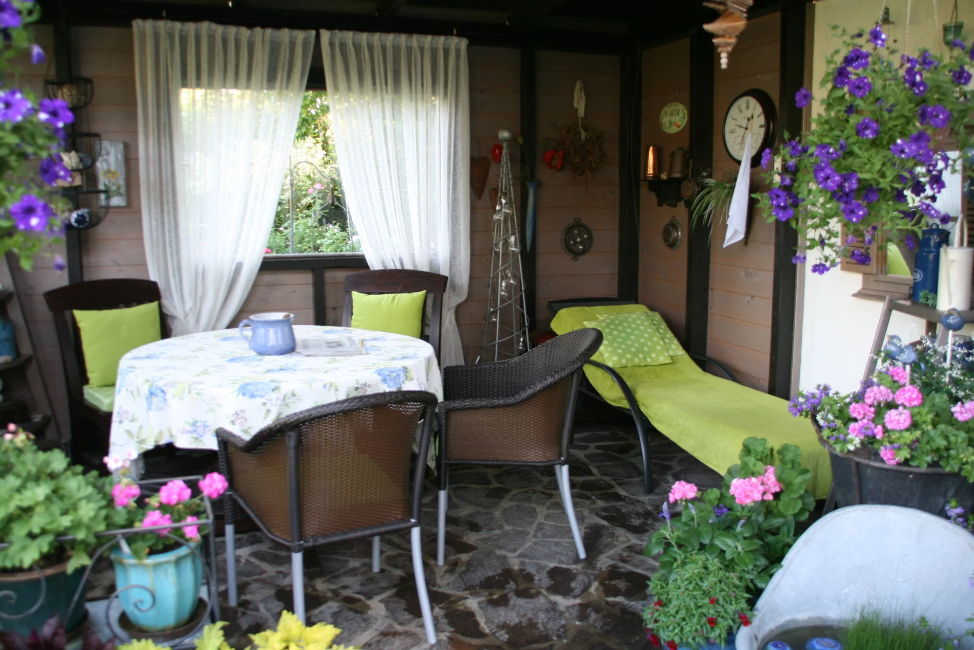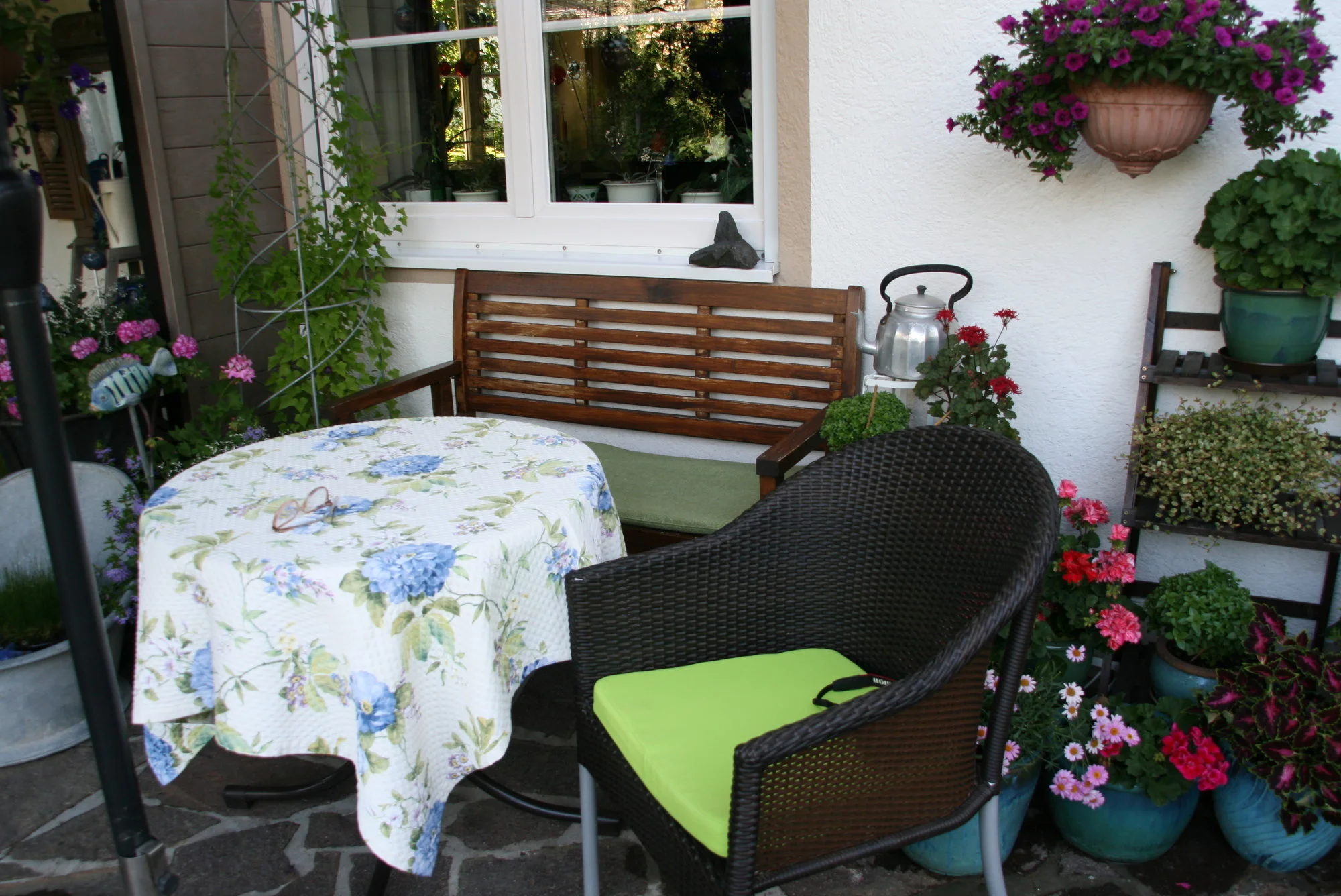 Wie der Bus Österreicher bei mir waren zum Garten anschauen, habe ich mein Sommerhäusl besonders geschmückt mit schönen Tischdecken. Rudi mußt natürlich sein Mittagsschläfchen auf meiner Liege (seiner Liege) machen.