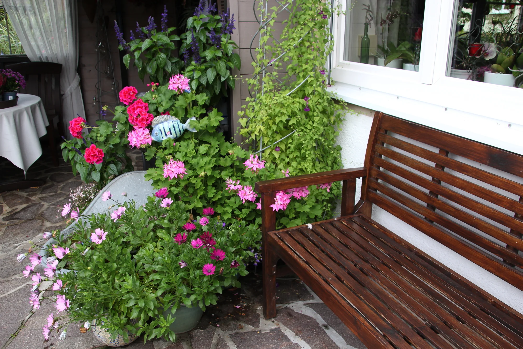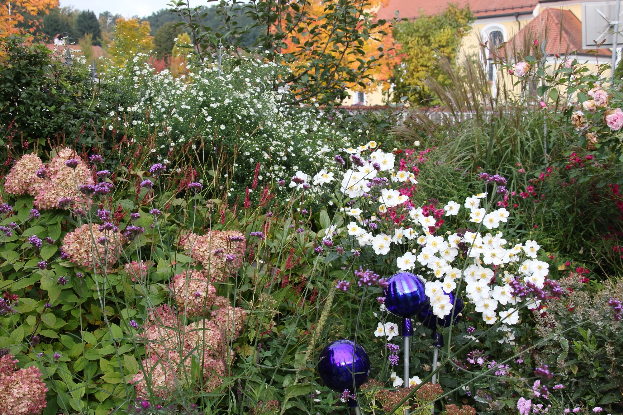 Herbstbilder vom Garten. Ich habe so eine schöne Herbstaster, die hohe kleinblütige im Hintergrund. Weiß aber leider nicht wie sie heißt. Sie wird sehr hoch und steht in einem hohen Gestell drinnen und hängt oben schön über.