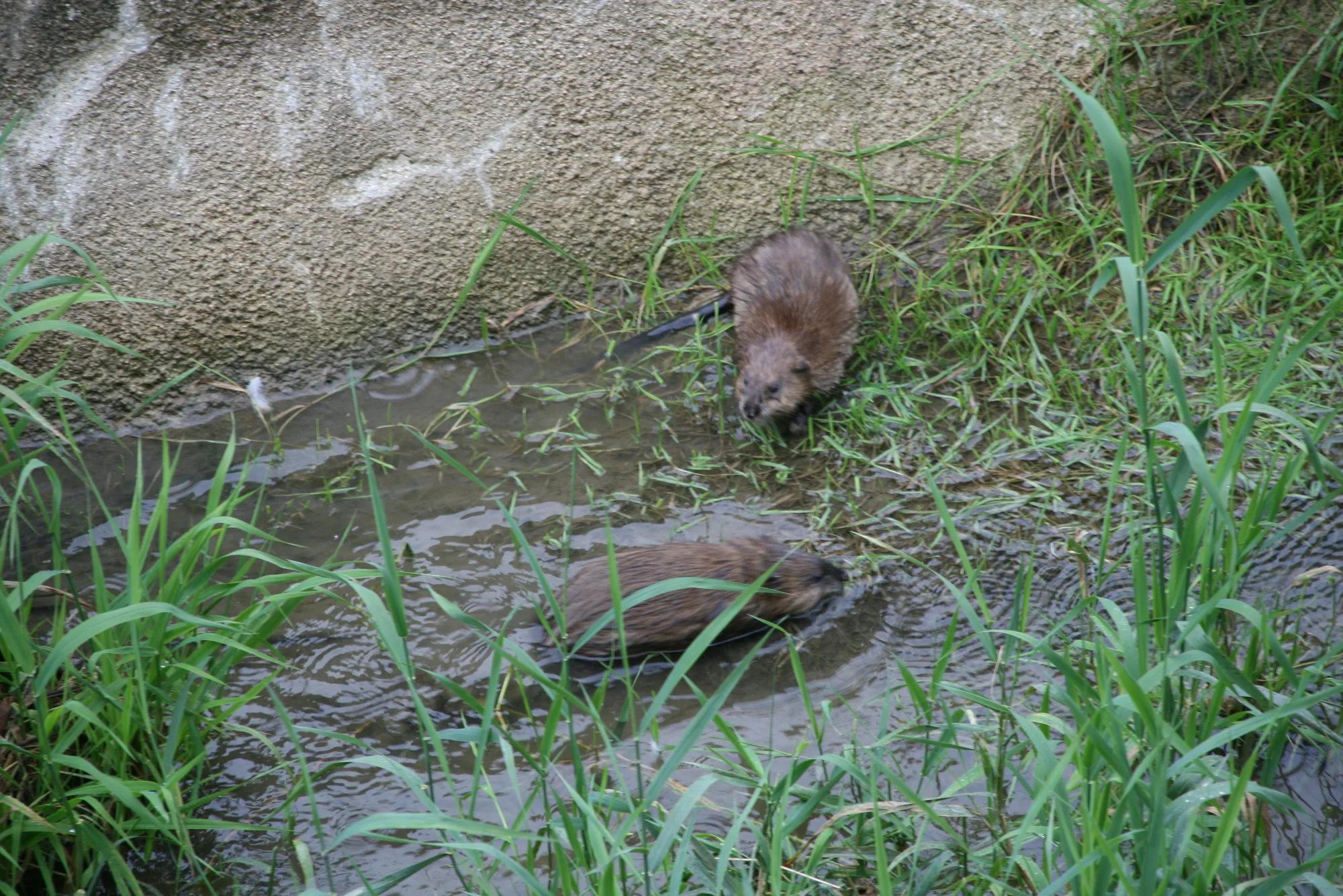 Da habe ich mal 2 Bisamratten beobachtet, einer saß in der Nähe von seiner Wohnung, da kam ein anderer geschwommen, sie begrüßten sich kurz mit Nasenstups und der andere schwamm weiter. Das war so schön anzusehen.