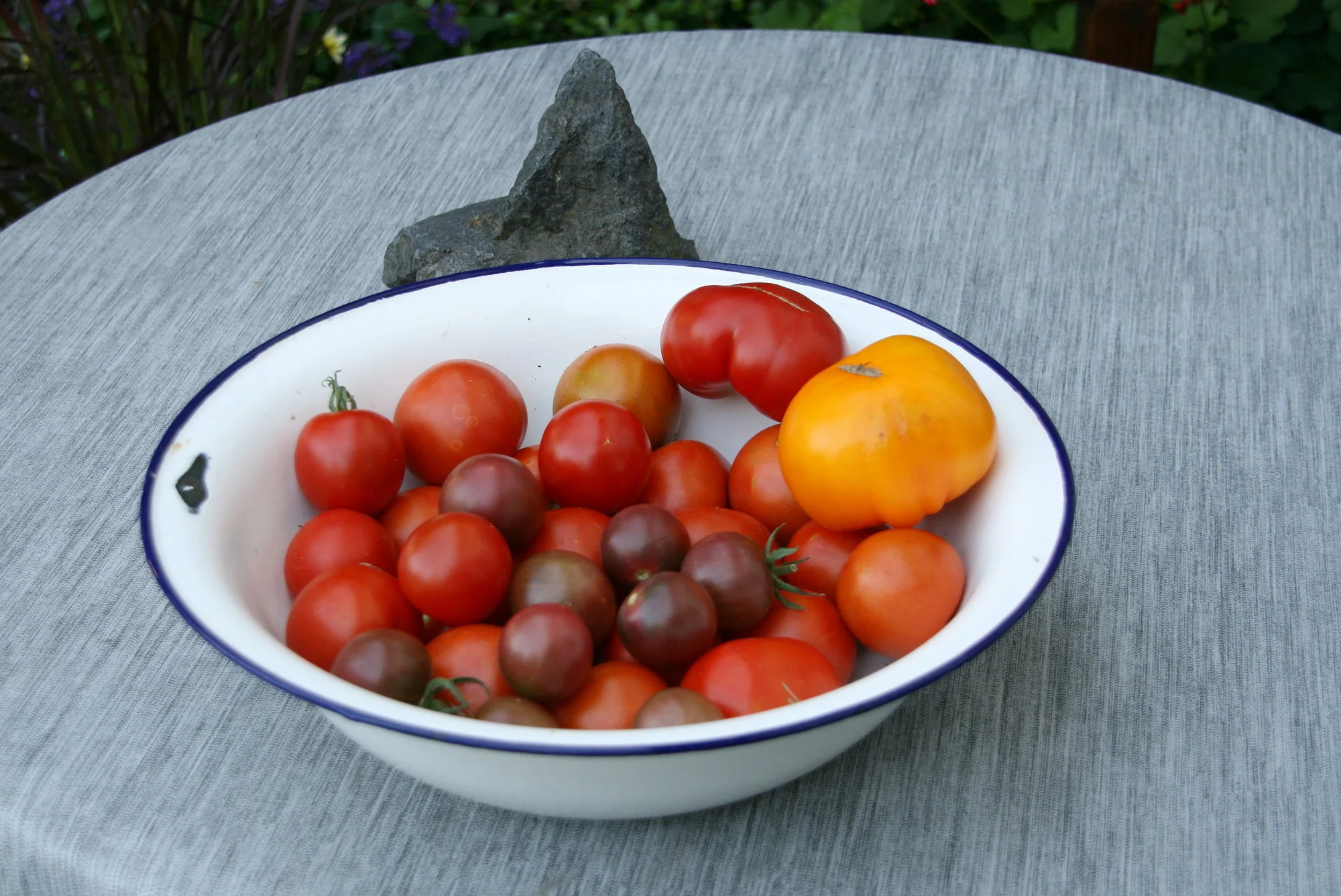Gestern und heute gings endlich los mit Tomatenernte. Habe heute abend schon einen schönen Teller voll Tomaten mit dunklen Balsamicoessig, Kürbiskernöl, frischen Basilikum und Fetakäse, dazu Butterbrot, gegessen. Ach war das lecker.
