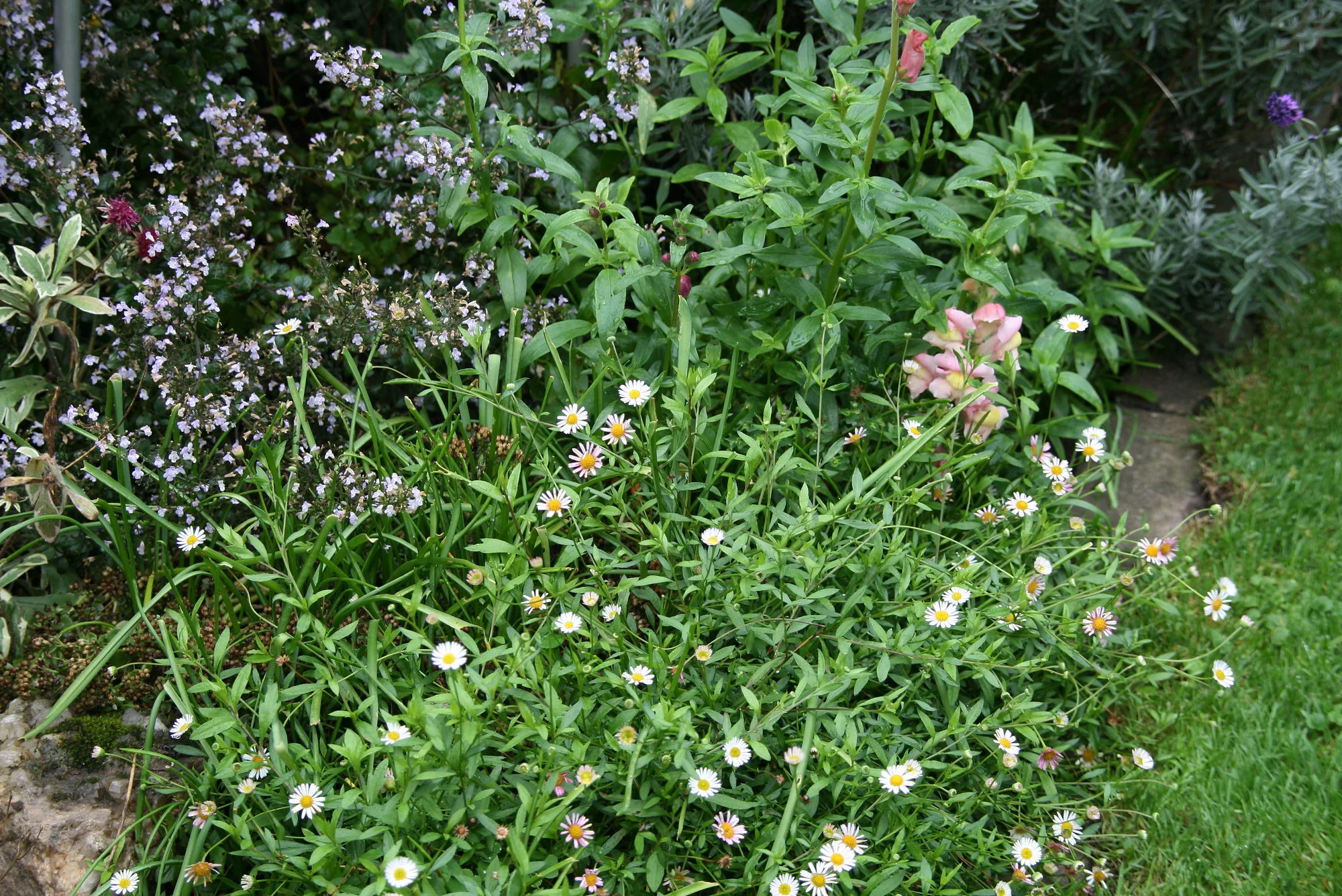 Die Aster vom ersten Bild die ist pinkfarbig, die kommt erst. Die lila-Sorten blühen schon. Das ist eine sehr dankbare Sorte, nicht zu hoch. Sie vermehren sich gut, man kann oft teilen.