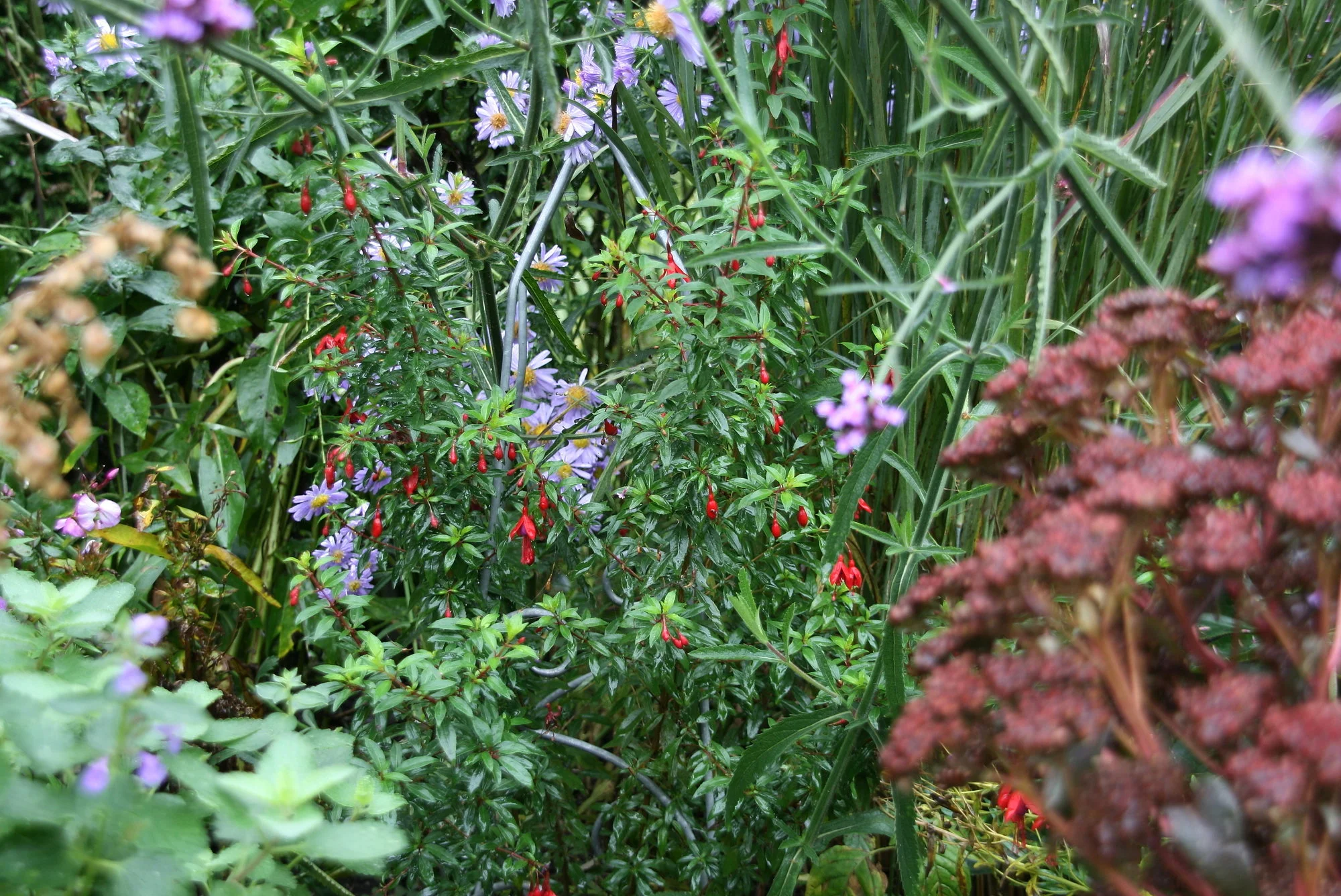 Die Wildcyclamen vermehren sich auch immer besser. Da kann ich mal wieder was verschenken. Die Rispenhortensien stehen jetzt dekorativ bis zum Frühling. Die winterharte Fuchsie im 3.Bild habe ich erst dieses Jahr im Frühling gesetzt. Die hat sich schön gemacht.
