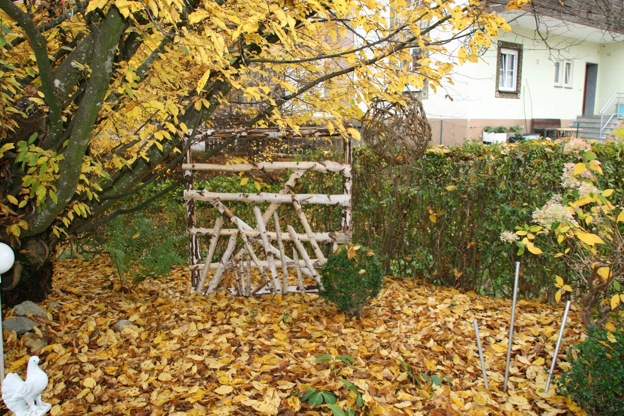 Was Du für schöne Zyklamen hast! Ich habe nur die ganz normalen, freu mich aber auch über jede einzelne. die Gans hat sich aber auch gut versteckt, na ja, s´ist ja bald Martini! :) Die Hopfenbuche hat Dir einen wunderschönen goldenen Teppich beschert.