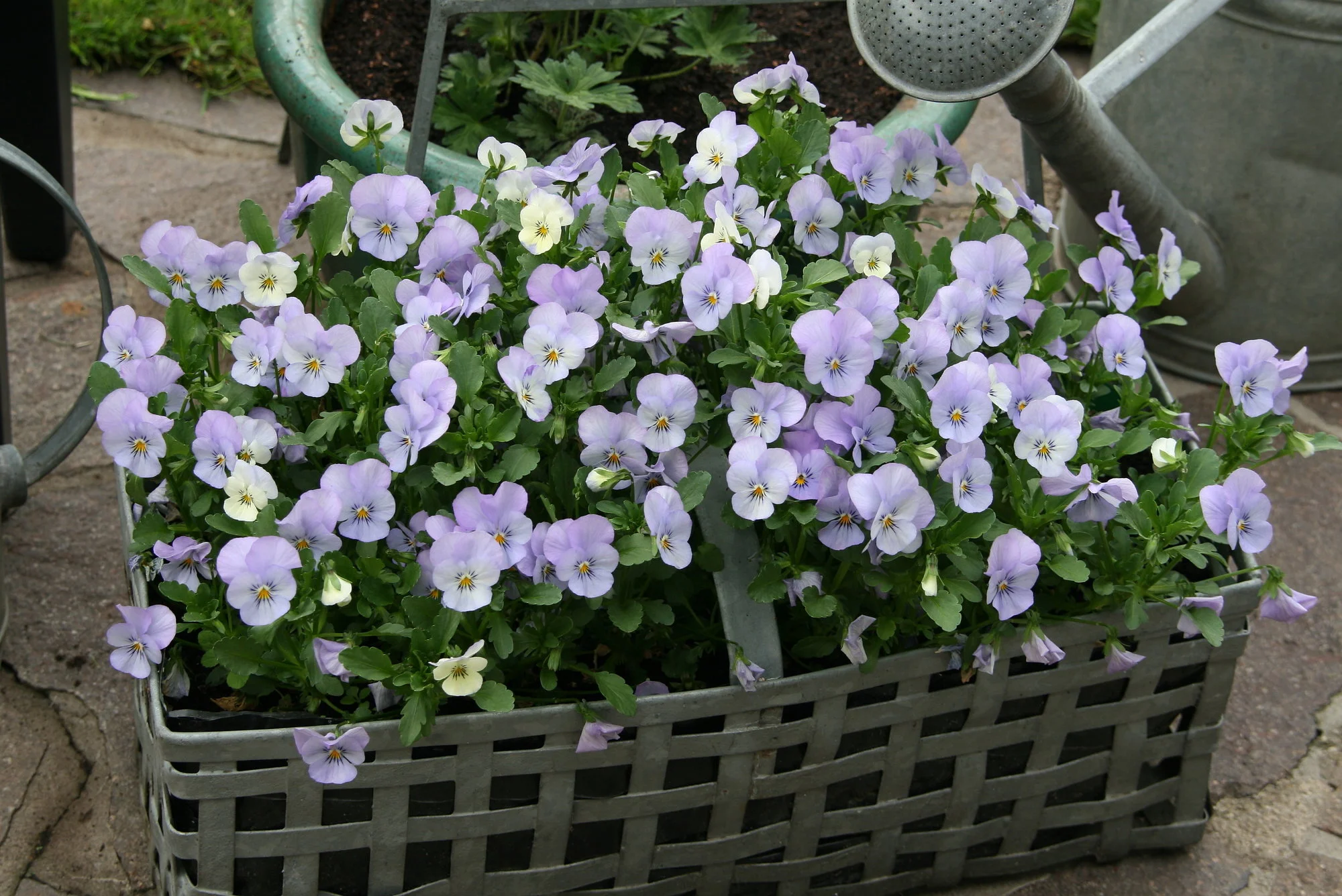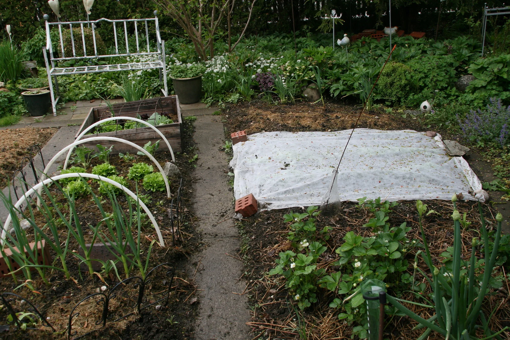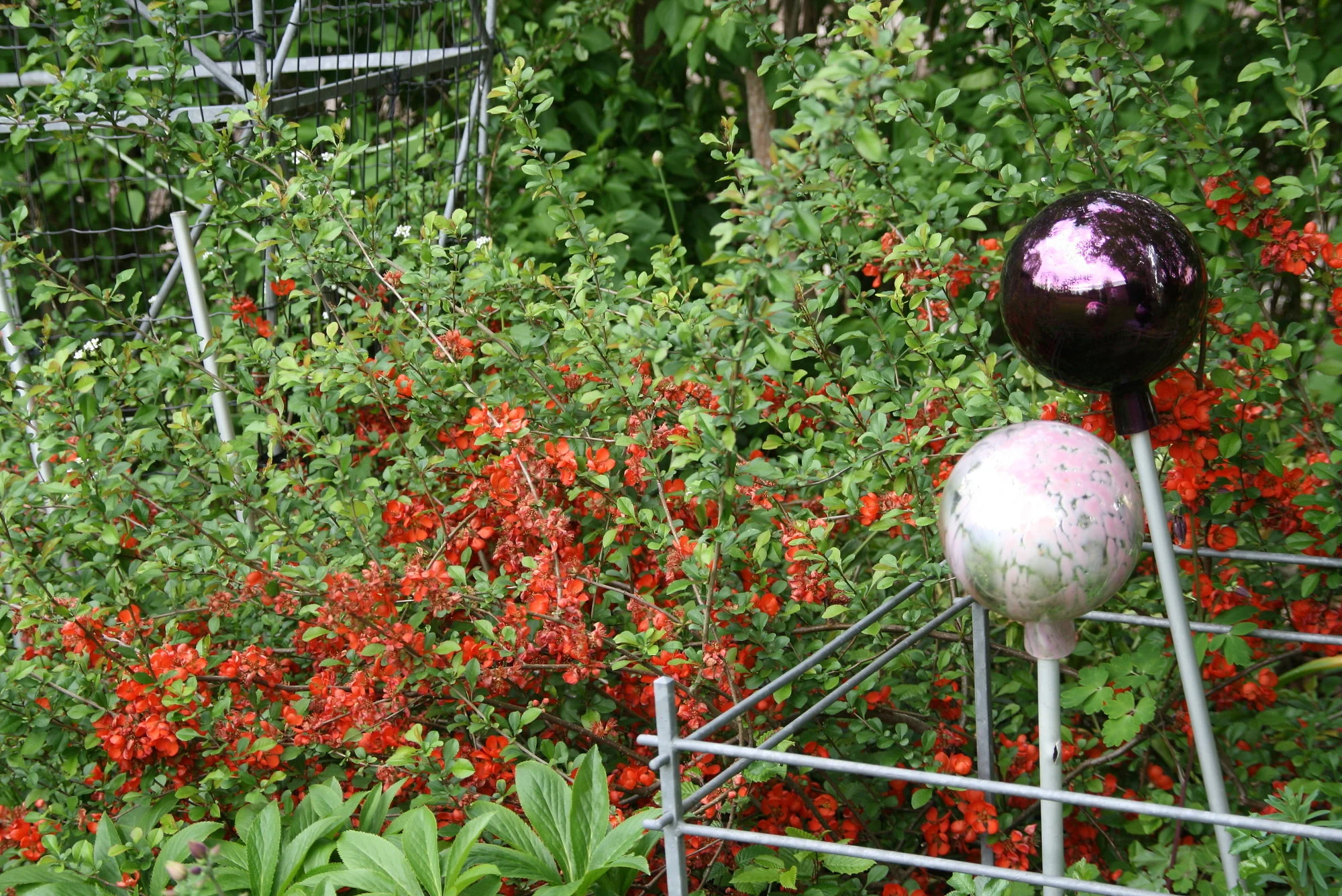 Der Eisenkorb mit den Hornveilchen ist auch bald fertig... aber momentan noch schön. Der Bärlauch fängt jetzt auch an zu blühen. Die Zierquitte ist auch in voller Blüte und der einjährige weiße Lerchensporn ist auch so schön. Jetzt seht ihr wieder wie es momentan bei mir blüht.