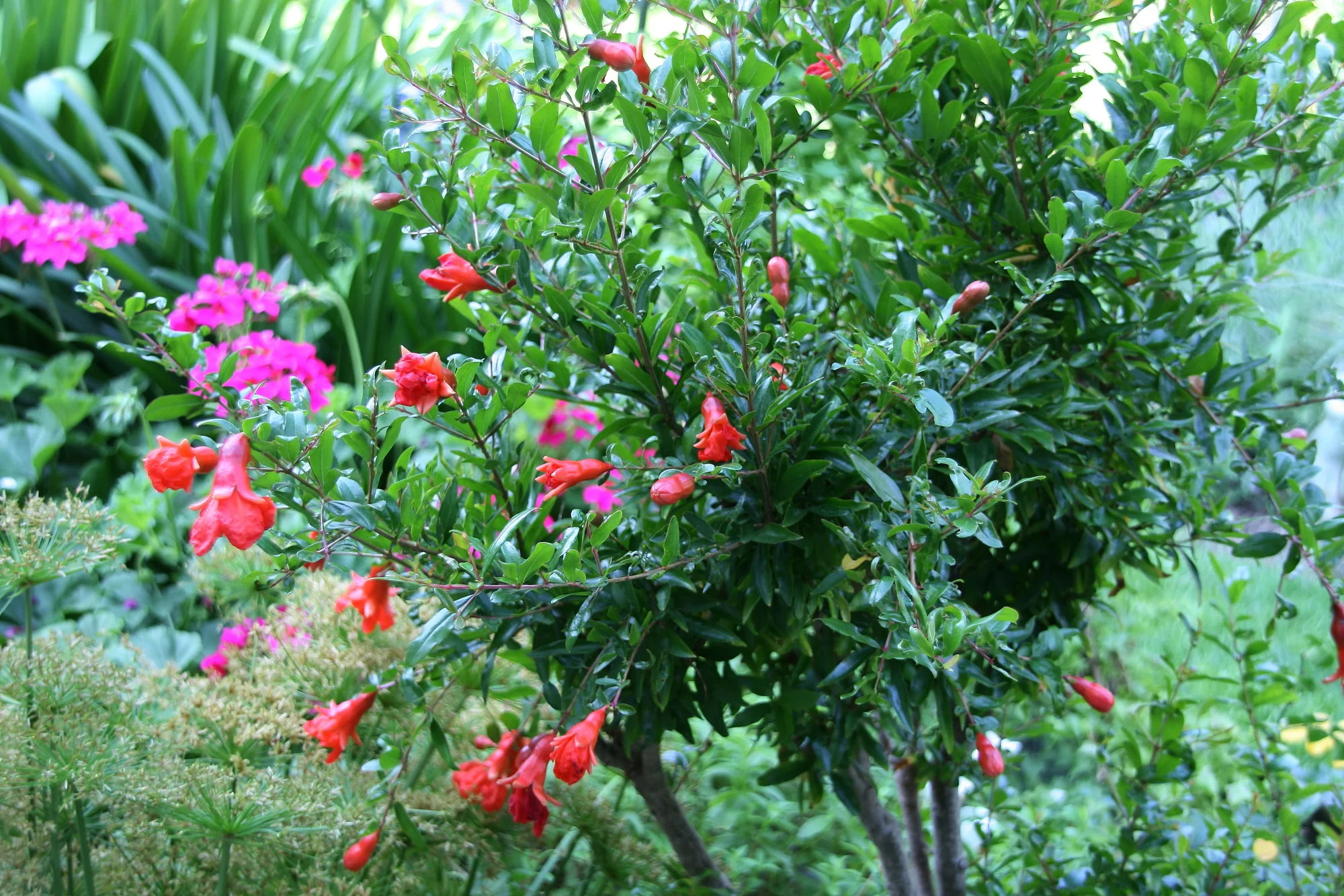 Ja, das verstehe ich. Ich baue auch schon ab, alles was stirbt wird nicht mehr ersetzt. Mein Winterquartier ist ja auch nicht groß, aber der Tisch ist goldwert. Da stelle ich die Agas drunter und oben drauf kommen die beiden Fuchsien und so manches andere. Wenn ich Agas teile, die verschenke ich dann, damit sie wieder in gute Hände kommen. Finde immer Abnehmer..... es gibt ja zum Glück genug Gartenverrückte;). Mein Granatapfel blüht auch schon, nur Früchte sind noch nicht da, da ist es noch zu früh. Das sind schon ältere Bilder. Der ist auch total problemlos zu überwintern, der bleibt auch lange draußen und kommt früh wieder raus. Das ist die Nana-Form, also die kleine Form mit nicht essbaren Früchten.