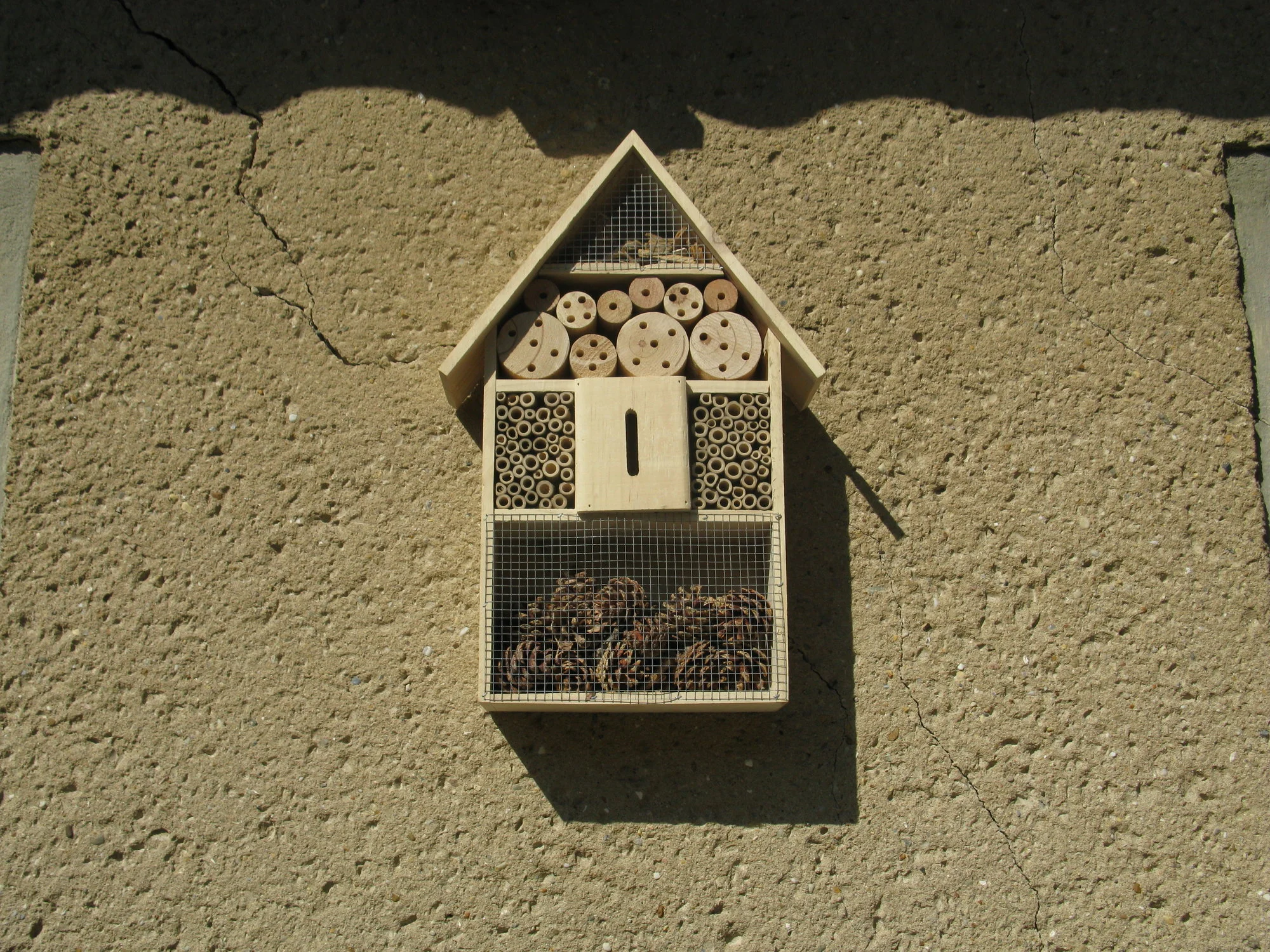 Das Insektenhotel hat seinen Platz gefunden.