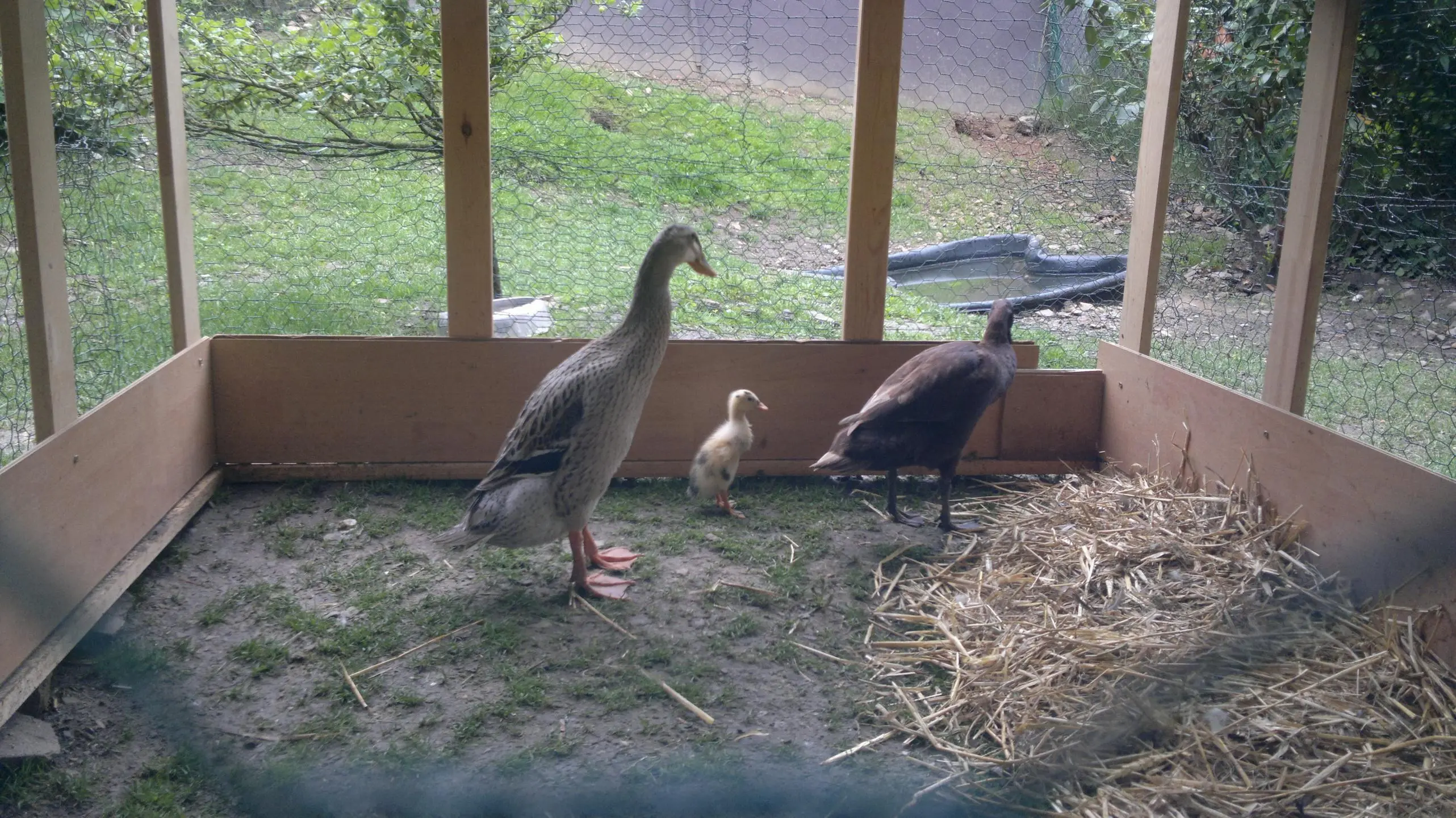 nach den gestrigen schweren Regenfällen habe ich die Enten gestern schon am frühen Abend in den Stall gepackt, weil ich mir echt Sorgen gemacht habe, dass mein kostbares Einzelküken sonst zu sehr auskühlt. Die Damen haben es nämlich nicht nötig, ein kleines, nasses Küken in irgendeiner Form unter den Flügel zu nehmen, trocken zu halten, oder nebenbei mit einzufetten.