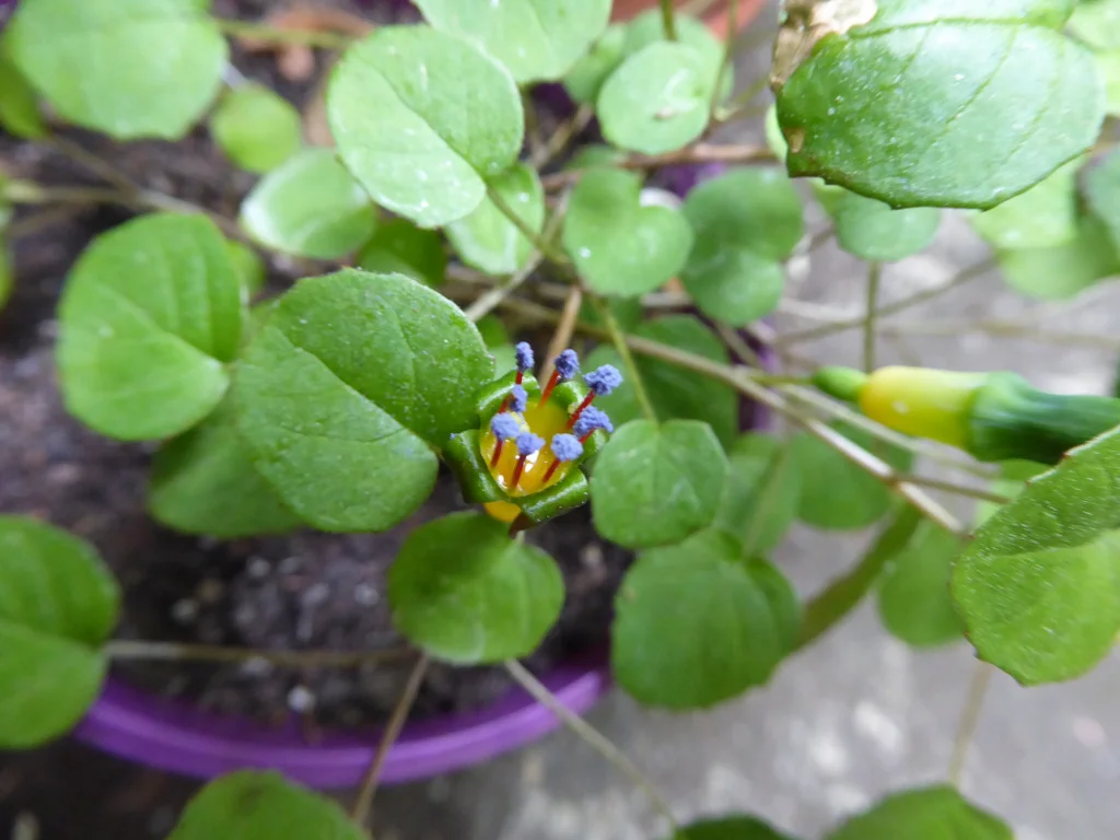 Fuchsia procumbens stand bei mir auf dem Balkon. Sie war mickrig, als ich sie im Frühjahr gekauft habe. Im Sommer ist sie kräftig gewachsen, die Blüten waren wunderschön!