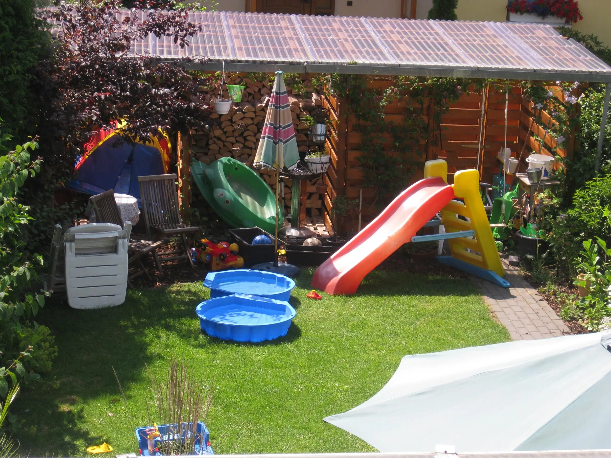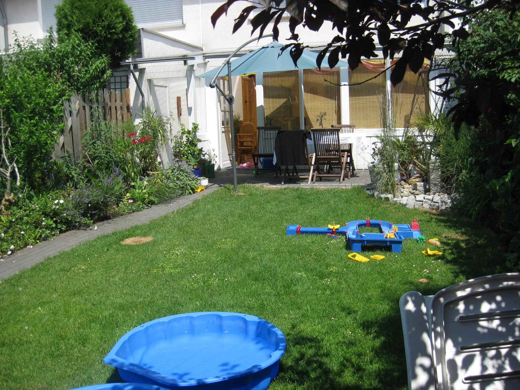 Wir haben also ganz von vorn angefangen und überhaupt keine Ahnung von Pflanzen und Bäumen aber wir dachten uns, wir versuchen es erst einmal mit Rasen. Da hatten wir aber keine Ahnung, dass die Nachbarn da anderer Meinung waren und nu, hab ich so nach und nach viele Pflanzen geschenkt bekommen. Die meisten kenne ich nicht und bei der anderen Hälfte weiß ich nicht was daraus mal entsteht.